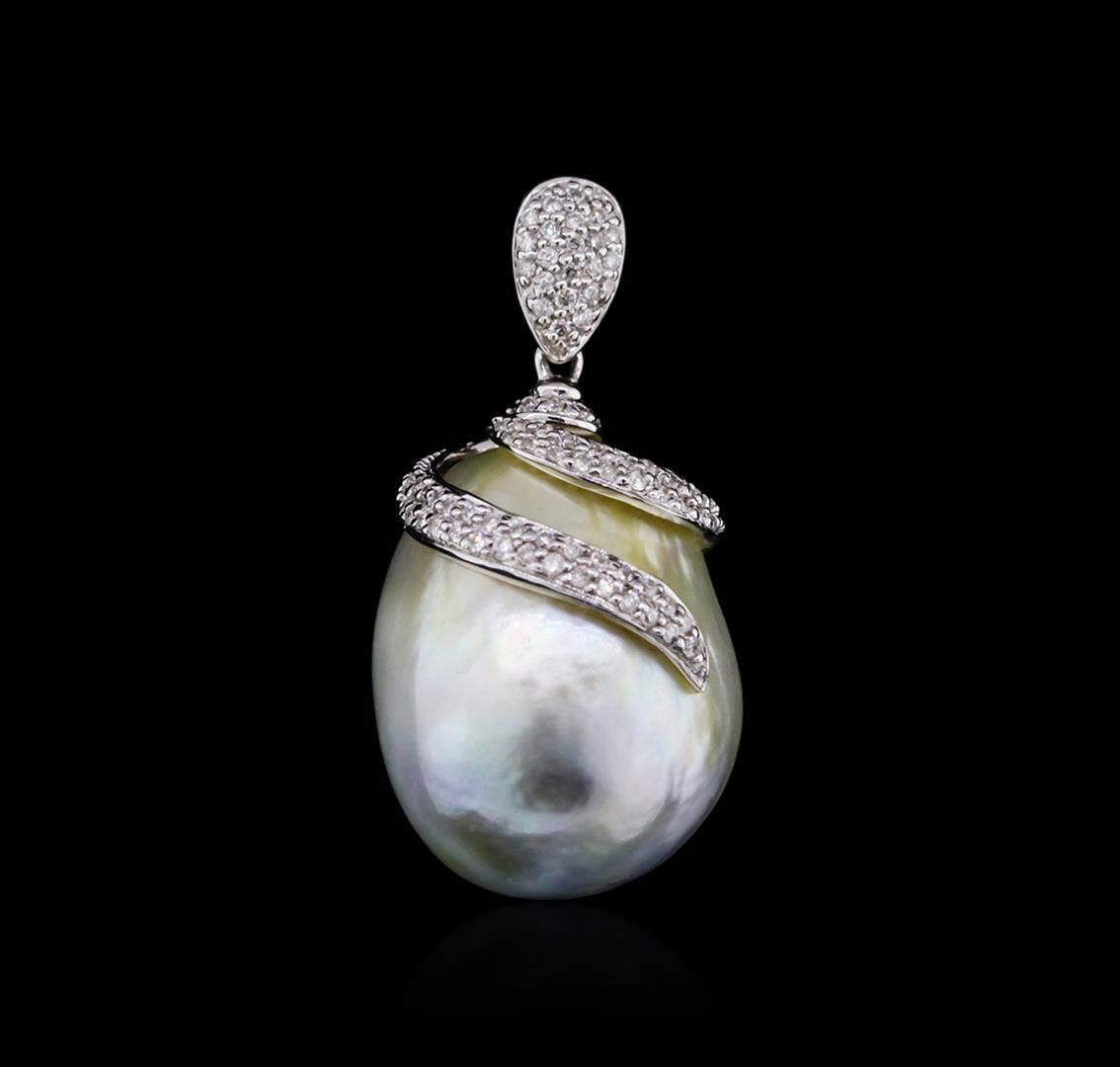 One pendant featuring: 14KT white gold weighing 1.68 grams containing one pearl with a total weight of 28.58ct and 75 round diamonds with a total weight of 0.30ct.