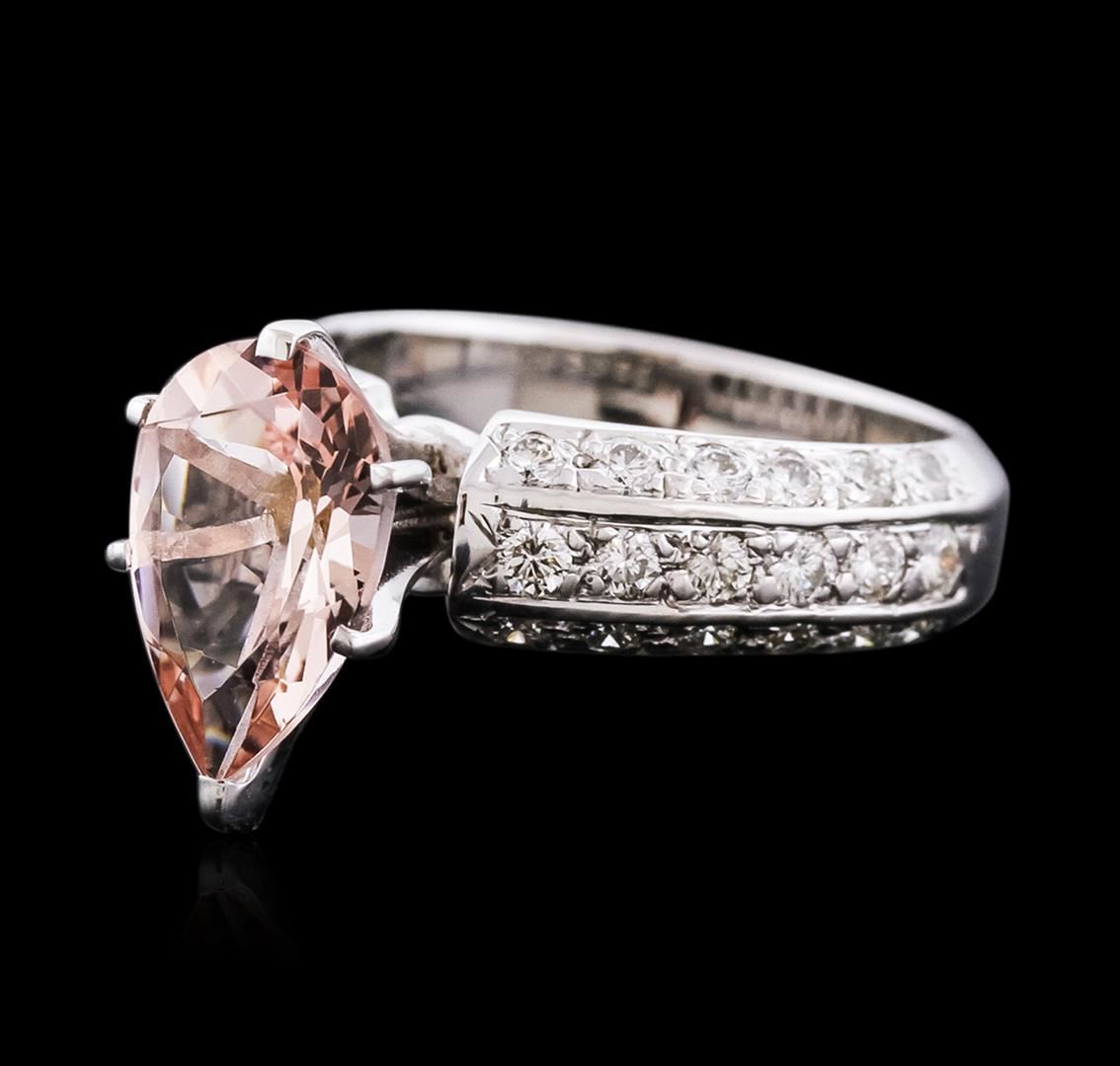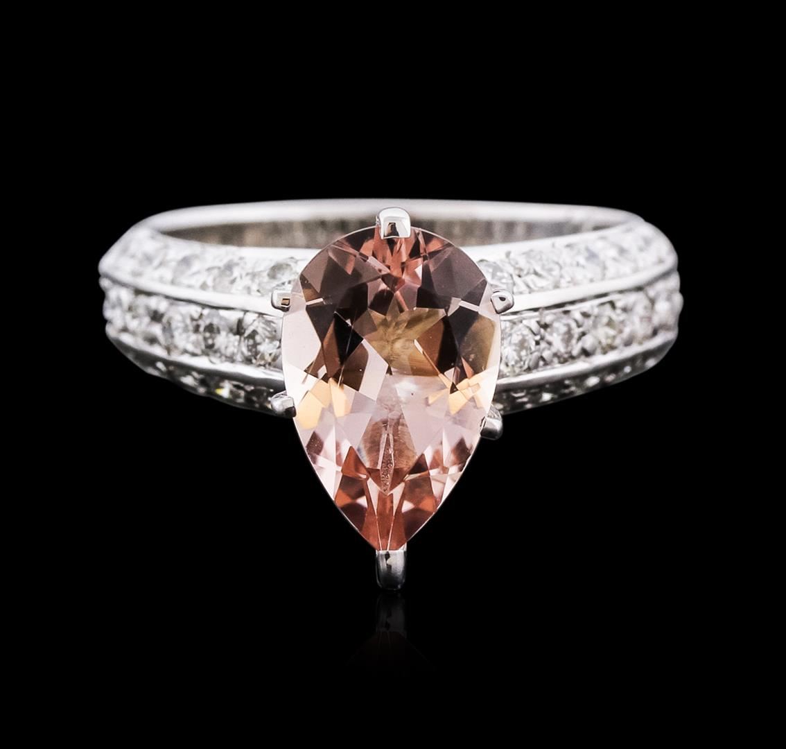One ring featuring: 14KT white gold weighing 5.4 grams containing one pear cut morganite center weighing 3.00ct and diamonds weighing a total of 0.85ct.