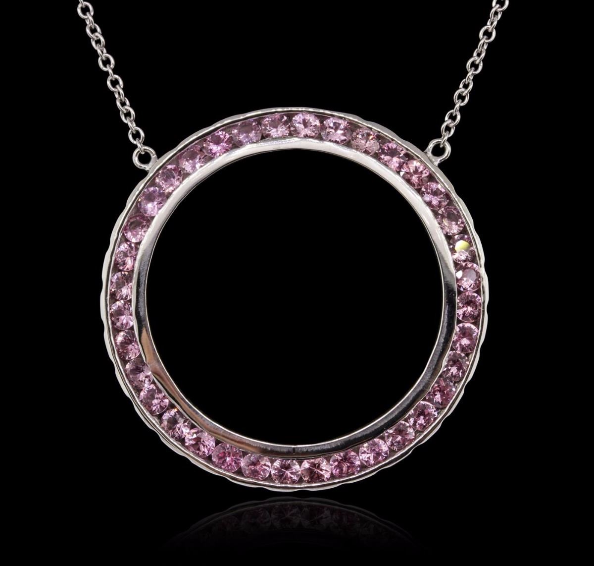 One necklace featuring: 14KT white gold with a total weight of 13.40 grams, and pink sapphire with a total weight of 3.00ctw.