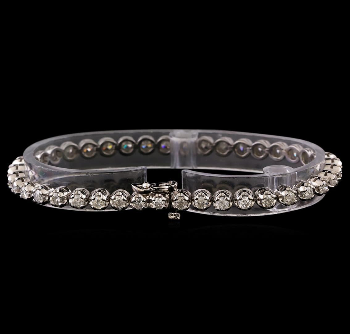 One electronically tested 14KT white gold ladies combination cast & assembled tennis bracelet with a hidden box clasp with safety closer with a bright polish finish. Measurements: 7 in length. Identified with markings of 14K. Condition is new. Containing: Forty-Two prong set round brilliant cut diamonds, measuring 2.70 - 2.70 x 1.62mm (depth est.) approximate total weight of 42 Stones = 3.02ct. Clarity: I-1 to I-2. Color: I - J, Cut is Good. All diamonds are graded in the mounting, unless otherwise stated. Total Weight of Diamonds 3.02ct. Total Weight of Bracelet 13.80 grams. GGL Appraised.