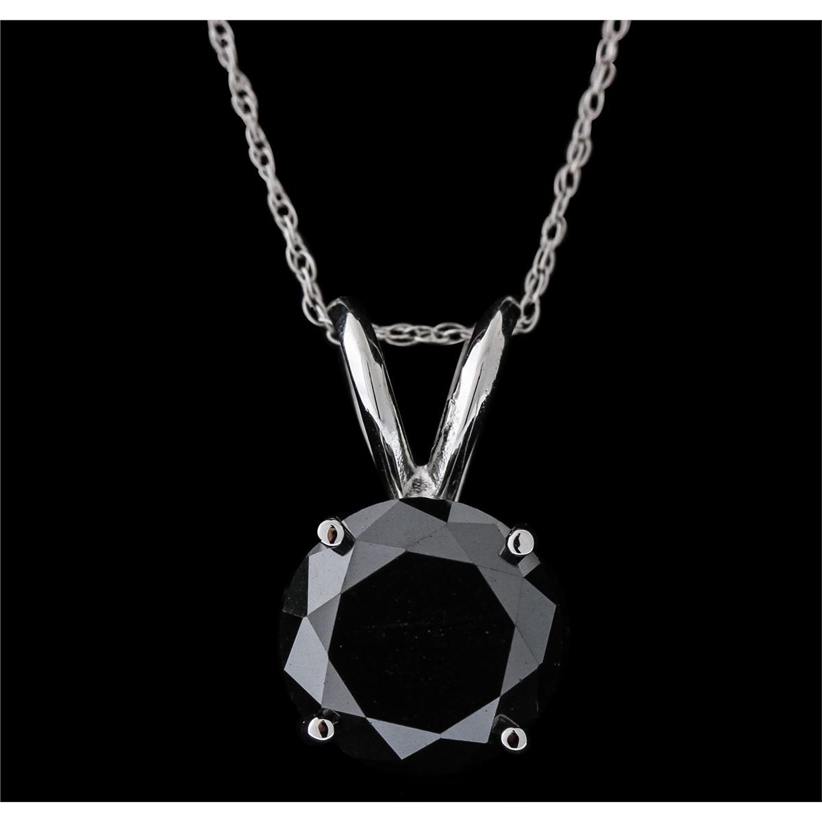 One pendant with chain featuring: 14KT white gold weighing 2.00 grams containing one prong set round black diamond with a total weight of 3.05ct. 40443.