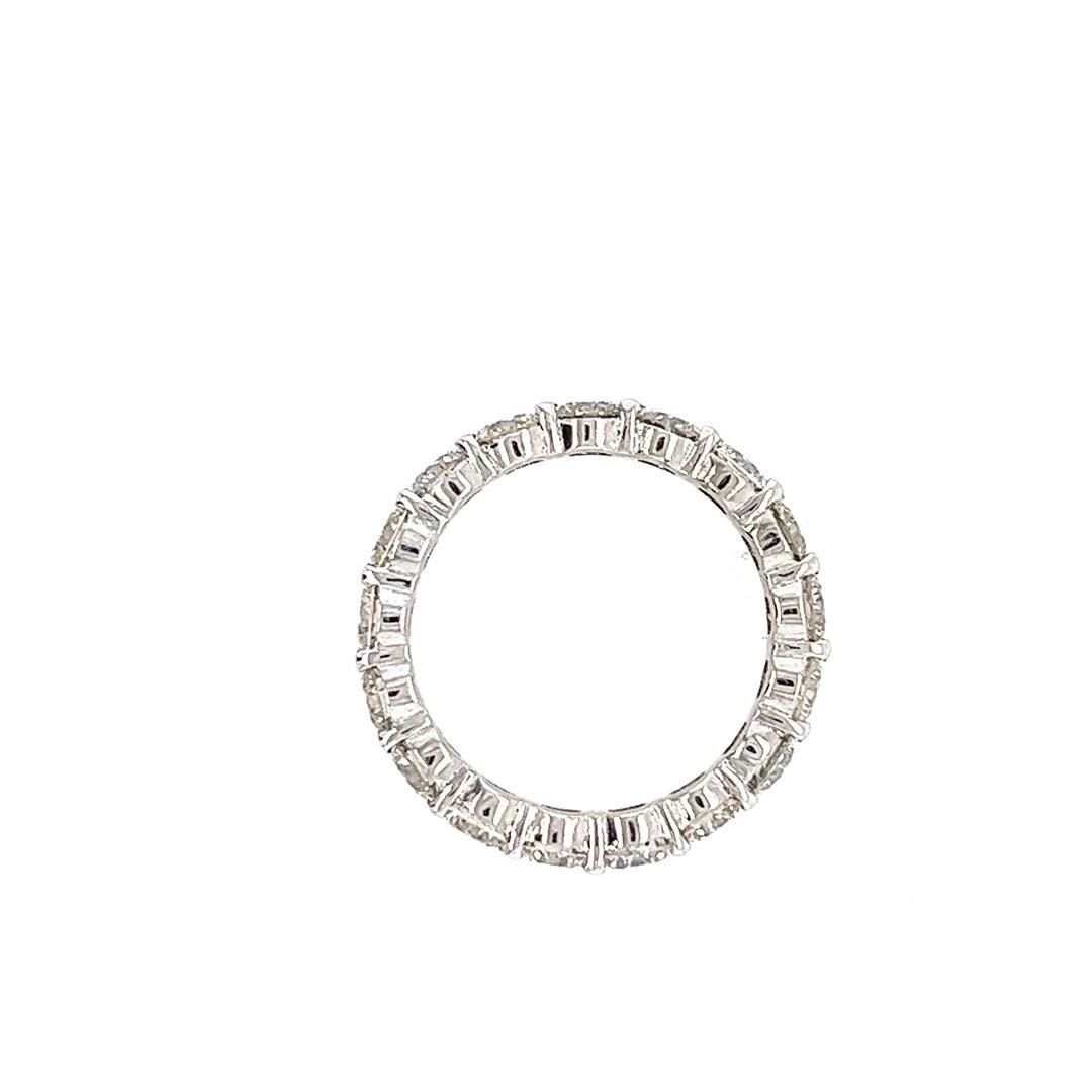 Appraisal No: 000022141005 One electronically tested 14KT white gold lady's cast fashion eternity ring with a bright polish finish. Condition is new, good workmanship. The featured lady's ring has a shank measuring 3.60 millimeters wide. Containing: Seventeen prong set round brilliant cut diamonds, measuring 3.68 - 3.60 x 2.26mm (depth est.) approximate total weight of 17 Stones = 3.10ct. Graded in the setting. Color H-1 Clarity VS-2 to SI-1 Cut Very Good Total Weight of Diamonds 3.10ct. Total Weight of Ring 3.20gm Total Estimated Retail Value $ 11960.00
