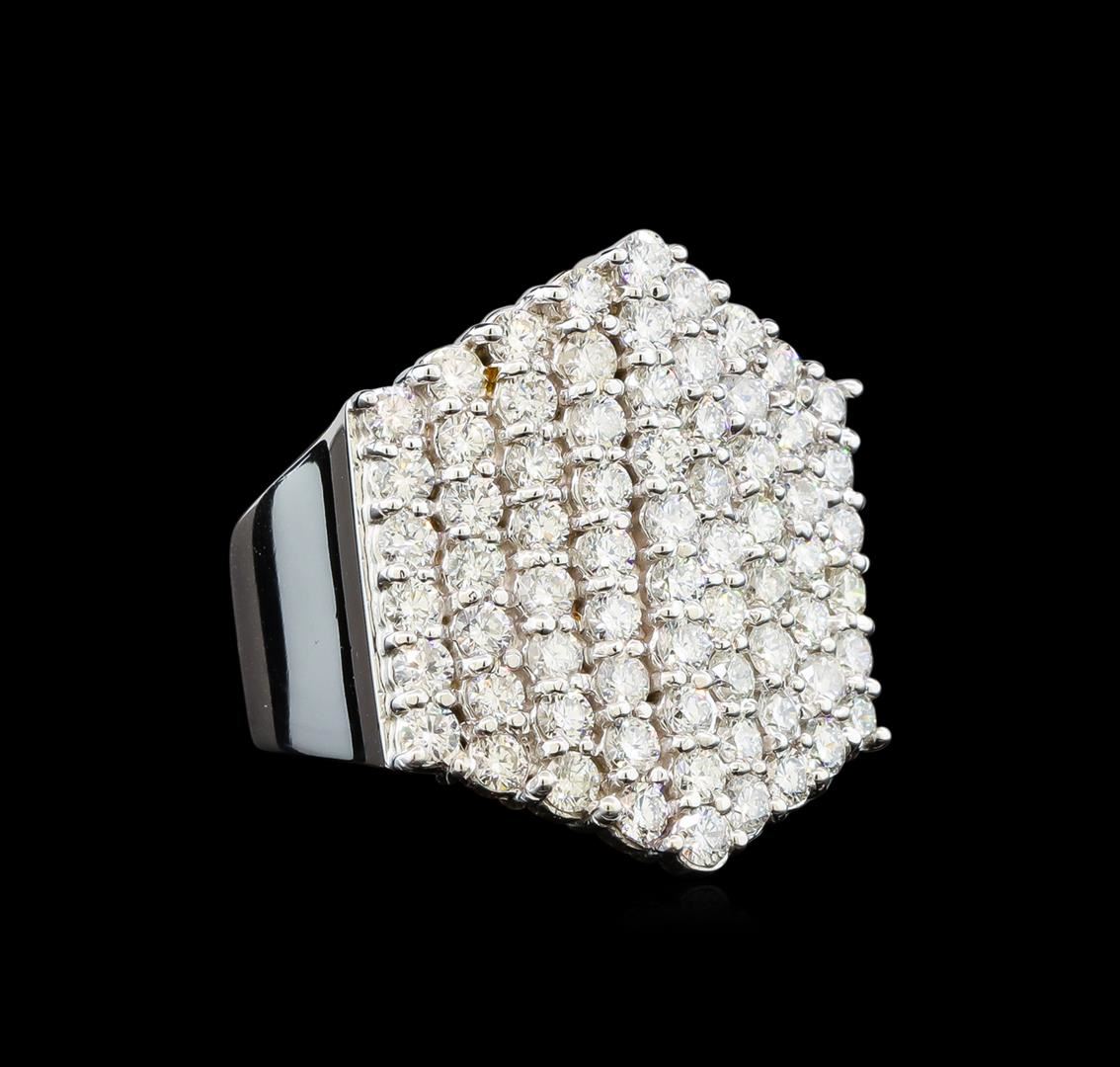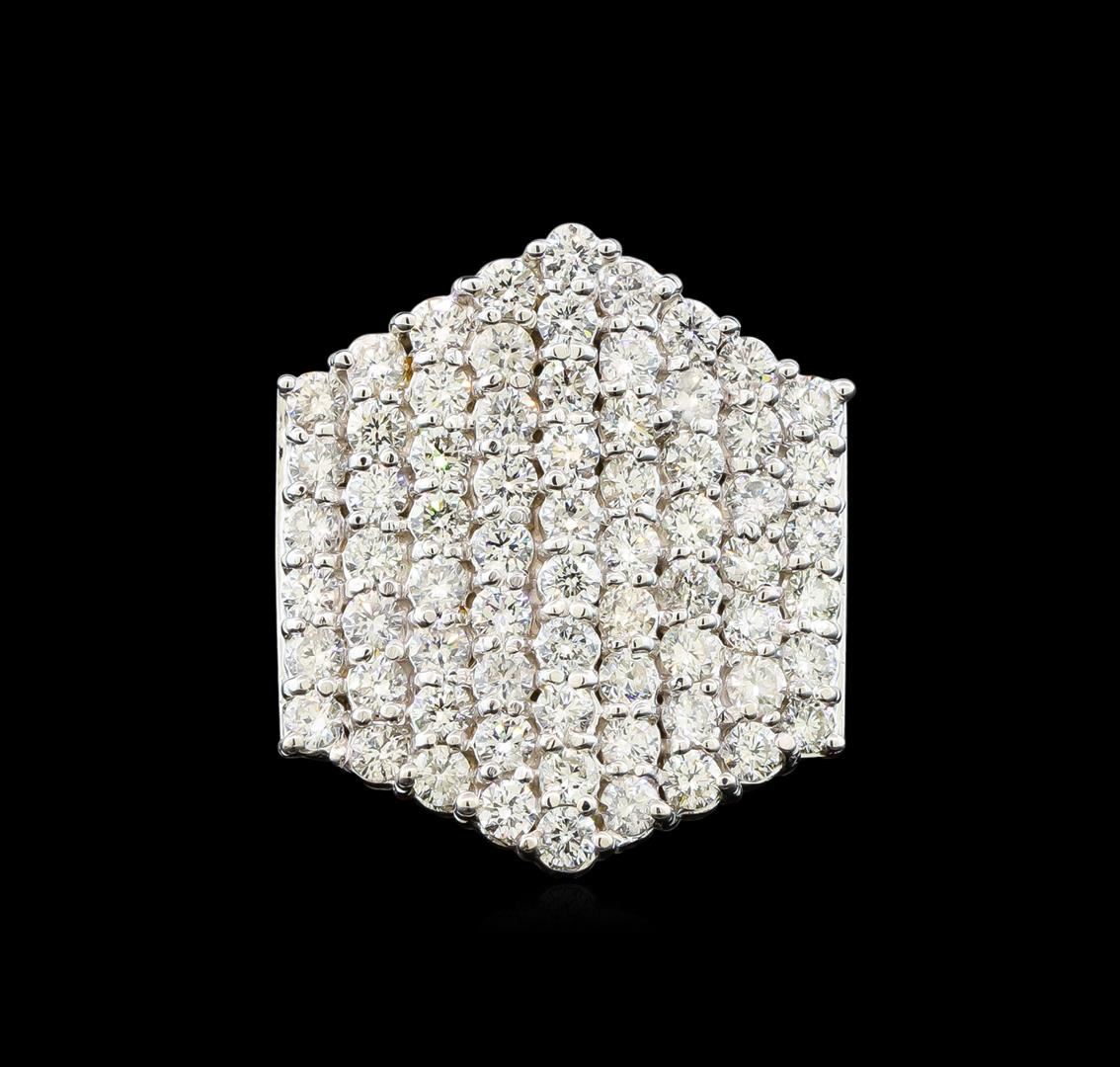 One electronically tested 14KT white gold ladies cast diamond ring with a bright polish finish. Identified with markings of "14K". Condition is new. Containing: Seventy prong set round brilliant cut diamonds, measuring 2.40 - 2.30 x 1.41mm (depth est.) approximate total weight of 70 Stones = 3.12ct. Clarity: VS-2 to SI-1. Color: G - H, Cut is Very Good. All diamonds are graded in the mounting, unless otherwise stated. Total Weight of Diamonds 3.12ct. Total Weight of Ring 14.20 grams. GGL Appraised at $8,155.00.