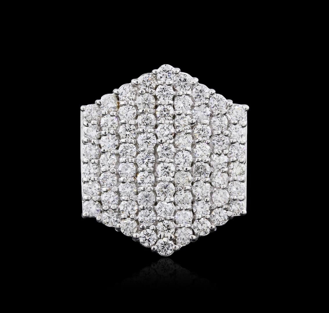 One electronically tested 14KT white gold ladies cast diamond ring with a bright polish finish. Identified with markings of "14K". Condition is new. Containing: Seventy prong set round brilliant cut diamonds, measuring 2.40 - 2.30 x 1.41mm (depth est.) approximate total weight of 70 Stones = 3.12ct. Clarity: VS-2 to SI-1. Color: G - H, Cut is Very Good. All diamonds are graded in the mounting, unless otherwise stated. Total Weight of Diamonds 3.12ct. Total Weight of Ring 14.20 grams. GGL Appraised at $8,155.00.