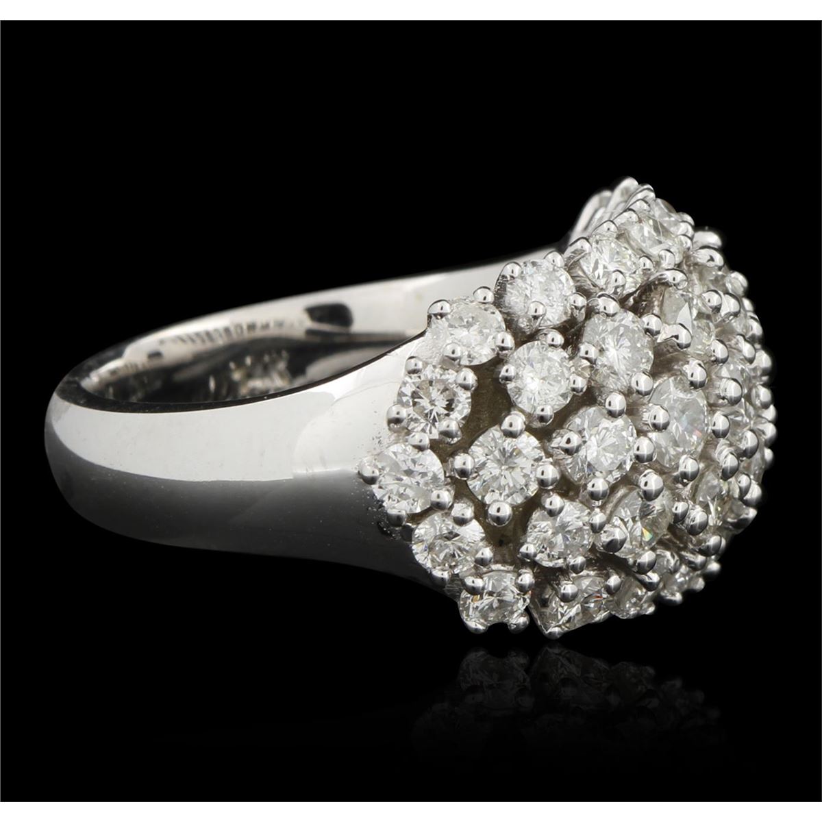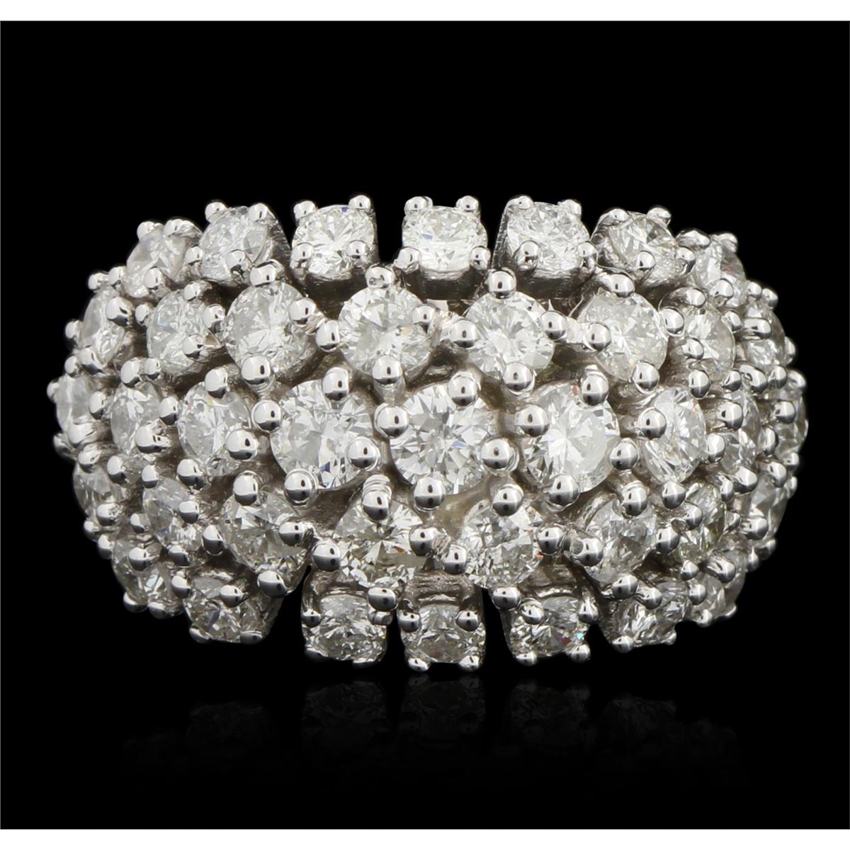 One polished, stamped, and electronically tested solid 14KT White Gold ring mounted with: 39 genuine diamonds weighing 3.18 carats. This item weighs 10.9 grams, condition is new, excellent workmanship. AIGL Appraised at $9,620.00.