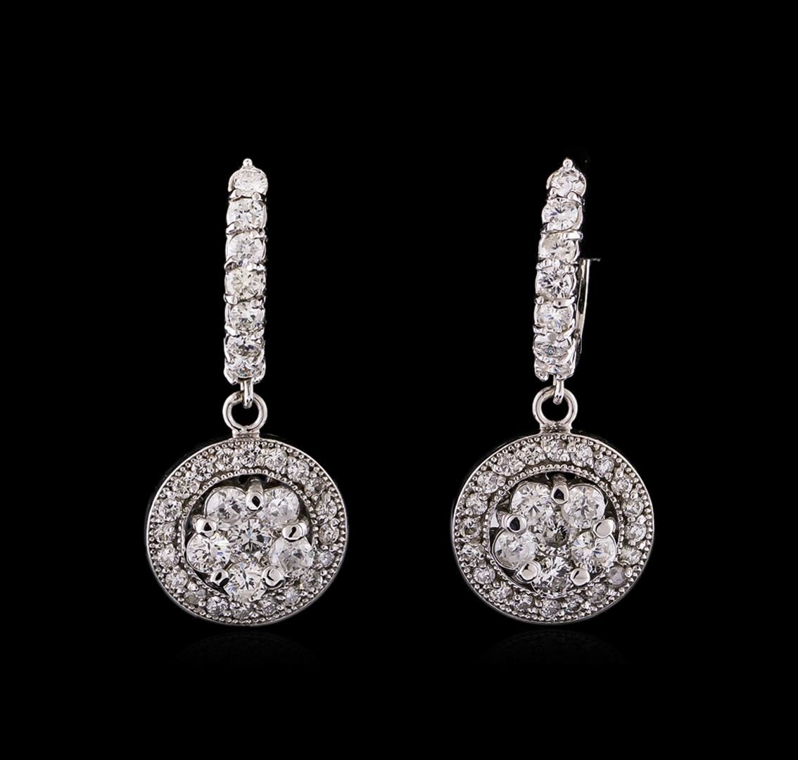 One pair electronically tested 14KT white gold Ladies combination cast & assembled earrings with hinged clip backs with a bright polish finish. Condition is new. Identified with markings of "14K". Containing: Fourteen prong set round brilliant cut diamonds, measuring 3.20 - 3.20 x 1.92mm (depth est.) approximate. Total Weight of 14 Stones = 1.68ct. Clarity: SI-1 to I-2. Color: J - K, Cut is Good. Fifty-Four prong set round brilliant cut diamonds, measuring 2.50 - 1.50 x 1.20mm (depth est.) approximate. Total Weight of 54 Stones = 1.58ct. Clarity: I-1 to I-2. Color: I - J, Cut is Good. All grading of diamonds and colored gemstones in this piece of jewelry are graded in the mounting, unless otherwise stated. Total Weight of Diamonds 3.26ct. Total Weight of Earrings 12.30 grams. GGL Appraised at $9,870.00.