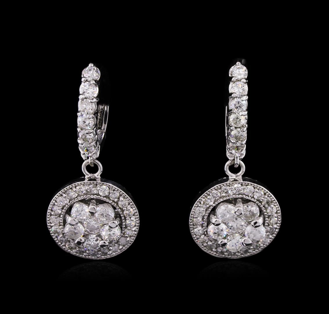 One pair electronically tested 14KT white gold Ladies combination cast & assembled earrings with hinged clip backs with a bright polish finish. Condition is new. Identified with markings of "14K". Containing: Fourteen prong set round brilliant cut diamonds, measuring 3.20 - 3.20 x 1.92mm (depth est.) approximate. Total Weight of 14 Stones = 1.68ct. Clarity: SI-1 to I-2. Color: J - K, Cut is Good. Fifty-Four prong set round brilliant cut diamonds, measuring 2.50 - 1.50 x 1.20mm (depth est.) approximate. Total Weight of 54 Stones = 1.58ct. Clarity: I-1 to I-2. Color: I - J, Cut is Good. All grading of diamonds and colored gemstones in this piece of jewelry are graded in the mounting, unless otherwise stated. Total Weight of Diamonds 3.26ct. Total Weight of Earrings 12.30 grams. GGL Appraised at $9,870.00.