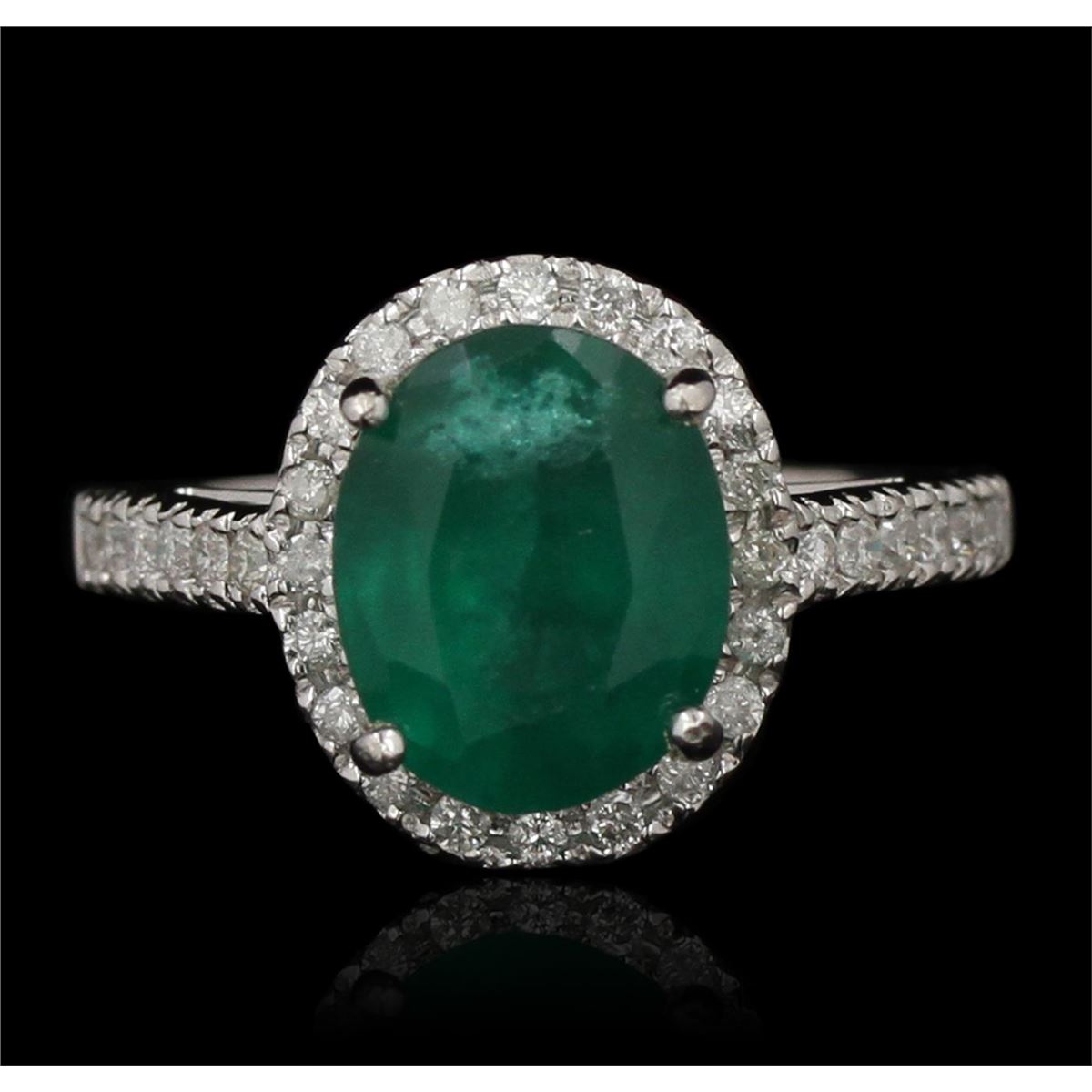 One electronically tested 14KT white gold Ladies combination cast & assembled cocktail ring with a bright polish finish. Identified with markings of "14K". Condition is excellent. Containing: One prong set oval modified brilliant cut natural emerald, measuring 10.40 x 8.30 x 6.00mm, approximate weight of 3.35ct., clarity is heavily included, type III, medium dark, moderately strong, green color, (GIA G 6/4), cut is good. Colored gemstones are presumed to have been subjected to commonly used and possible undetectable color/clarity enhancement processes. Thirty-Four prong set round brilliant cut diamonds, measuring 1.30 - 1.30 x 0.78mm (depth est.) approximate total weight of 34 Stones = 0.36ct. Clarity of I-1 to I-2, Color of I - J. Total Weight of Colored Stones 3.35ct. Total Weight of Diamonds 0.36ct. Total Weight of Ring 3.60gm. GGL Appraised at $7,755.00.