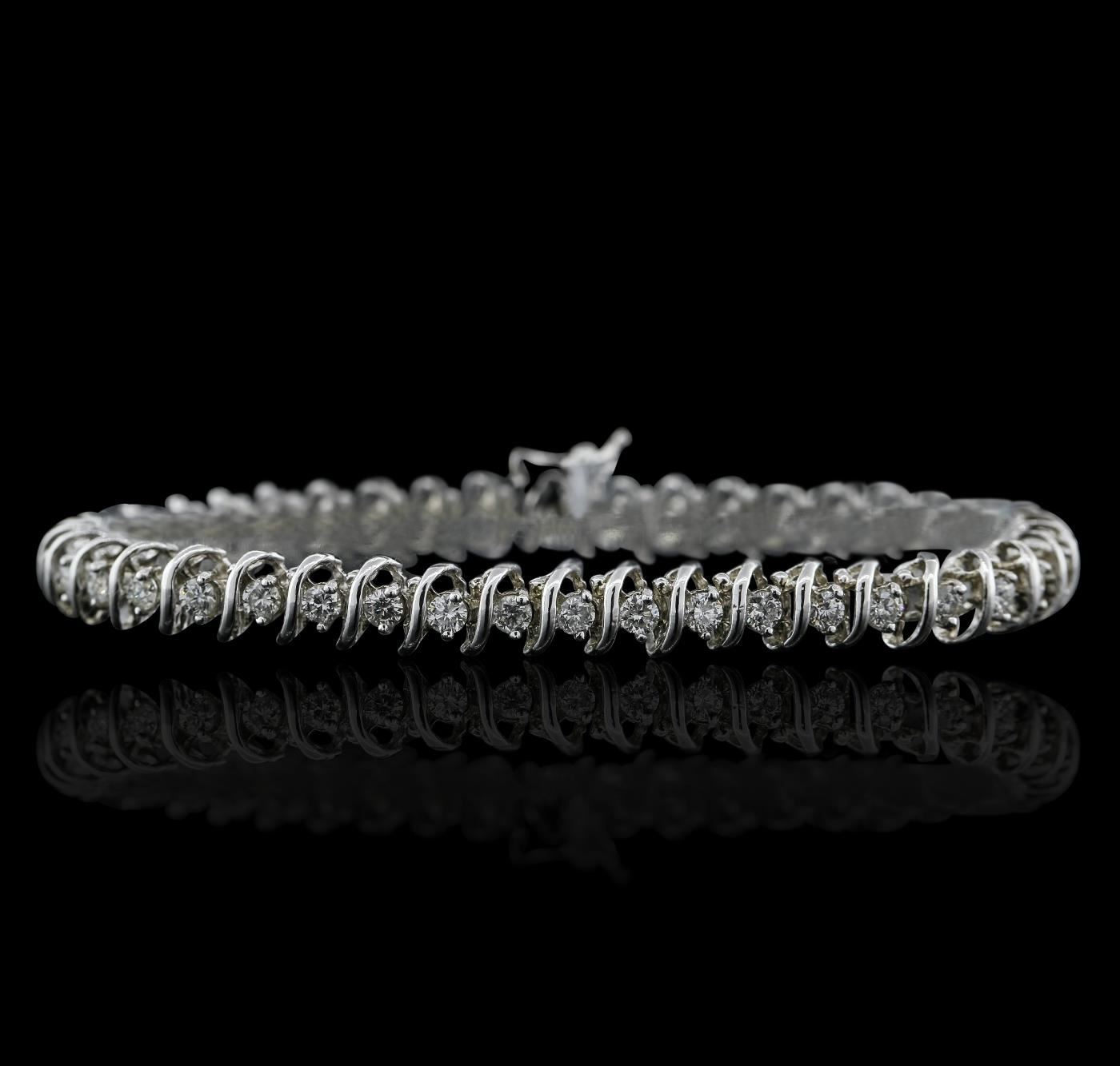 One electronically tested 14KT white gold ladies combination cast & assembled tennis bracelet with a hidden box clasp with a bright polish finish. Condition is new. Measurements: 7" in length. Containing: Forty-Two prong set round brilliant cut diamonds, measuring 2.80 - 2.80 x 1.68mm (depth est.) approximate total weight of 42 Stones = 3.37ct. Clarity: SI-2 to I-1. Color: H - J, Cut is Good. All diamonds are graded in the mounting, unless otherwise stated. Total Weight of Diamonds 3.37ct. Total Weight of Bracelet 15.10 grams. GGL Appraised.