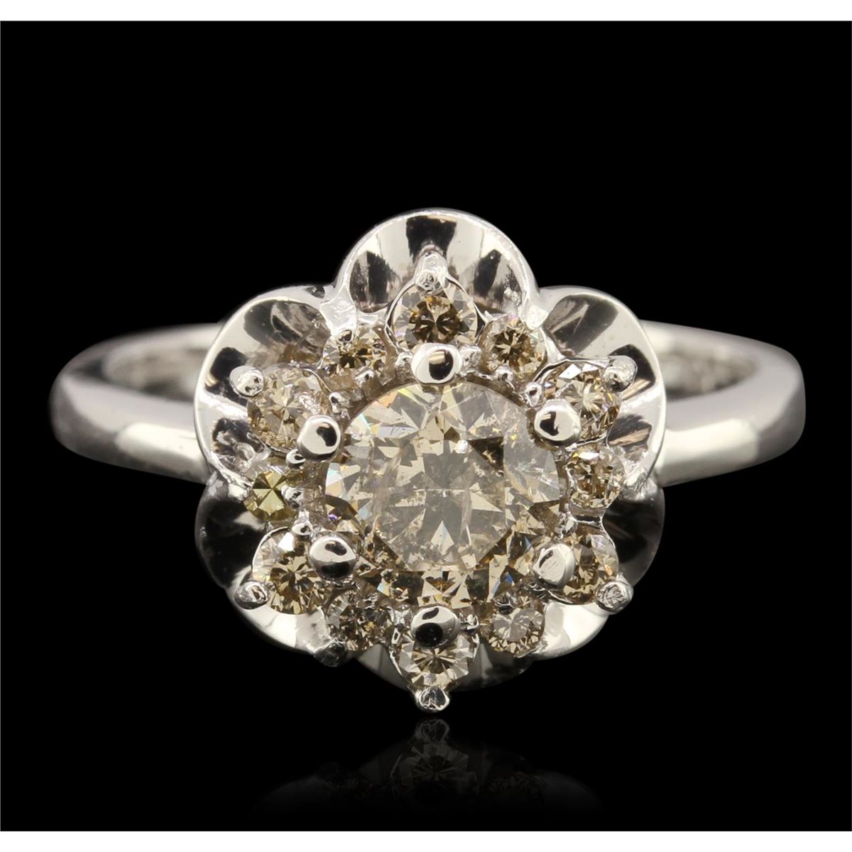 14KT white gold 3.44ctw Diamond Jewelry Suite A6627. One electronically tested 14KT white gold ladies cast & assembled diamond suite. The suite consists of a ring and a pair of dangle earrings. The ring features a stylized diamond set floret supported by tapering shoulders, completed by a two millimeter wide band. The suite is completed by a matching pair of earrings, terminating in hinged snap-locking posts. Bright polish finish. Identified with markings of "K14". Condition is new, good workmanship. Containing: Three prong set round brilliant cut diamonds, measuring 5.70 - 5.50 x 3.50mm (depth est.) approximate. Total Weight of 3 Stones = 2.10ct. Graded in the setting. Clarity: I-1 Fifty-Two prong set round brilliant cut diamonds, measuring 1.90 - 1.70 x 1.08mm (depth est.) approximate. Total Weight of 52 Stones = 1.34ct. Color grade is an average for the group. Graded in the setting. Clarity: SI-1 to I-1. Total Weight of Diamonds 3.44ct. AIG Appraised at $15,550.00.