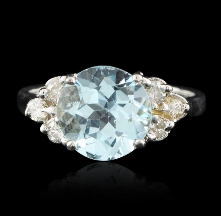 One ring featuring: 4.4 grams of 14KT white gold, (1) Blue Topaz with a total weight of 3.52ct and (6) diamonds with a total weight of 0.12ctw.