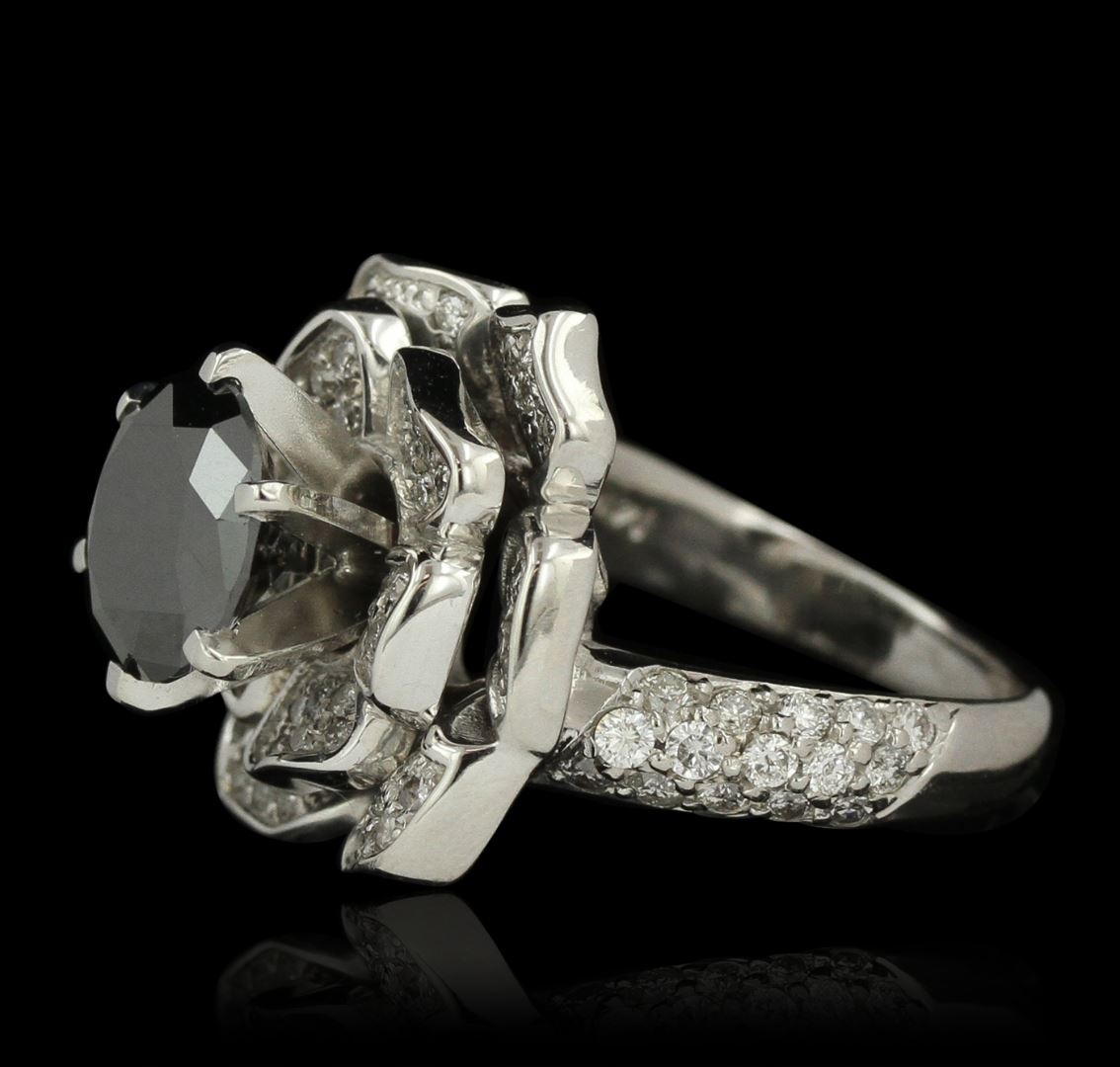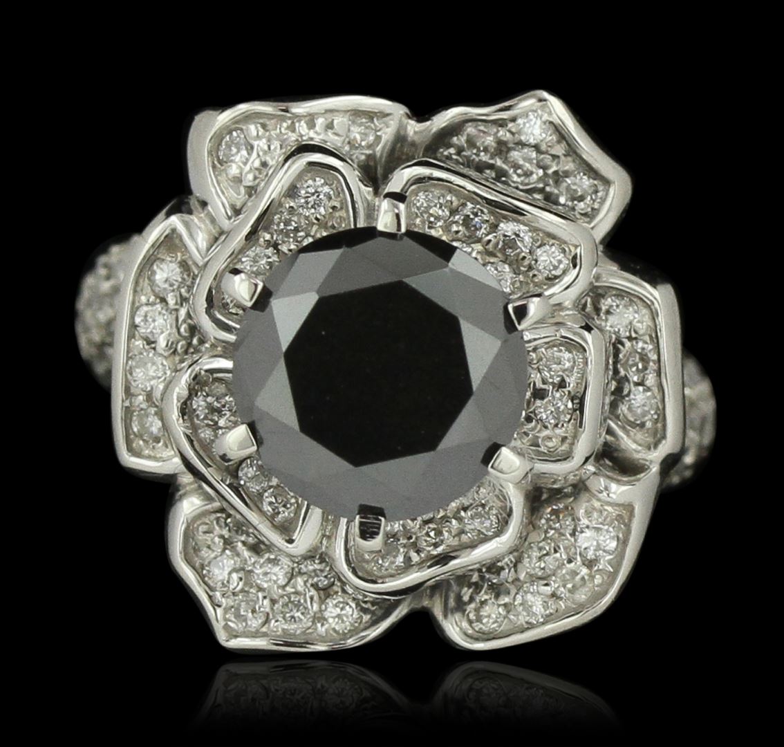 One ring wedding set featuring: 14KT White Gold, Black Diamond center weighing 2.37ct, and Diamonds with a total weight of 1.00ctw.
