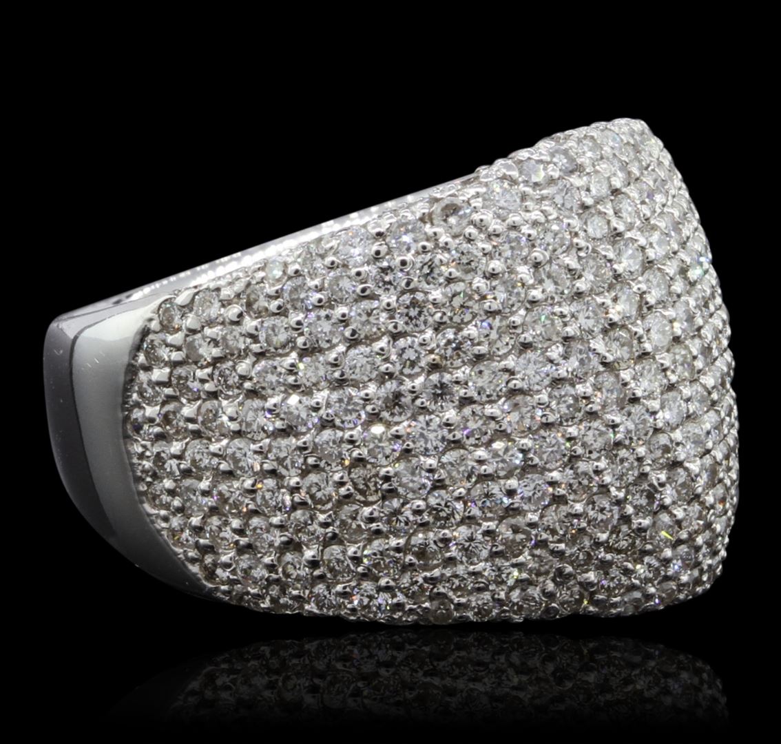 One electronically tested 14KT white gold Ladies combination cast & assembled fashion ring with a bright polish finish. Identified with markings of "14K". Condition is new. Containing: Two Hundred Ninety-Nine bead set round brilliant cut diamonds, measuring 1.60 - 1.40 x 0.90mm (depth est.) approximate total weight of 299 Stones = 3.68ct. Clarity of SI-1 to SI-2, Color of G - I, Cut is Very Good. Total Weight of Diamonds 3.68ct. Total Weight of Ring 13.00gm. GGL Appraised at $16,020.00.