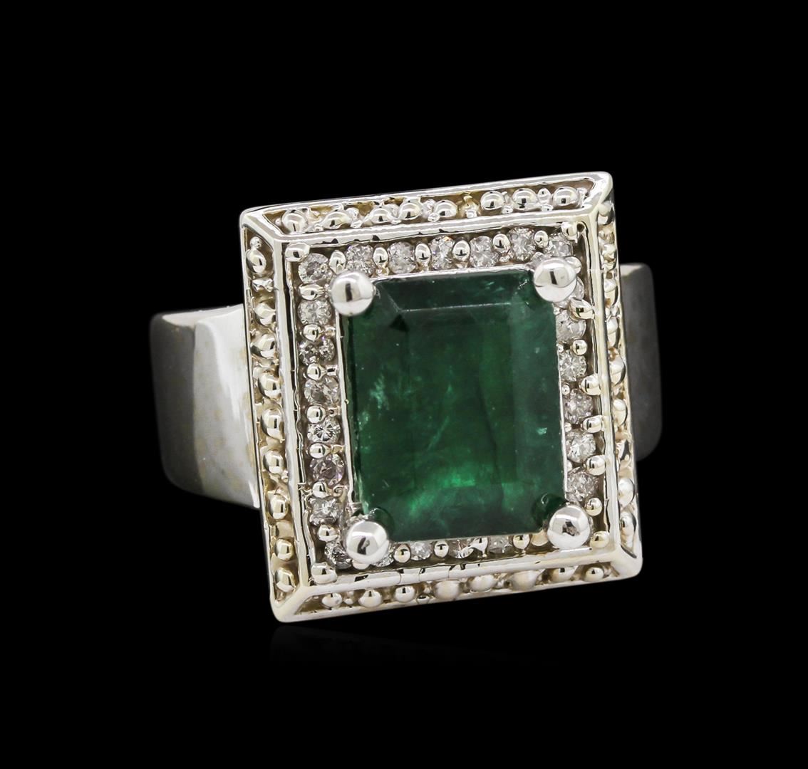 One polished, stamped, and electronically tested solid 14KT White Gold ring mounted with: 1 genuine emerald center stone weighing 3.83 carats and 25 genuine round full cut diamonds weighing 0.29 carats. This item weighs 11.6 grams, condition is new, good workmanship. AIGL Appraised at $4,900.00.