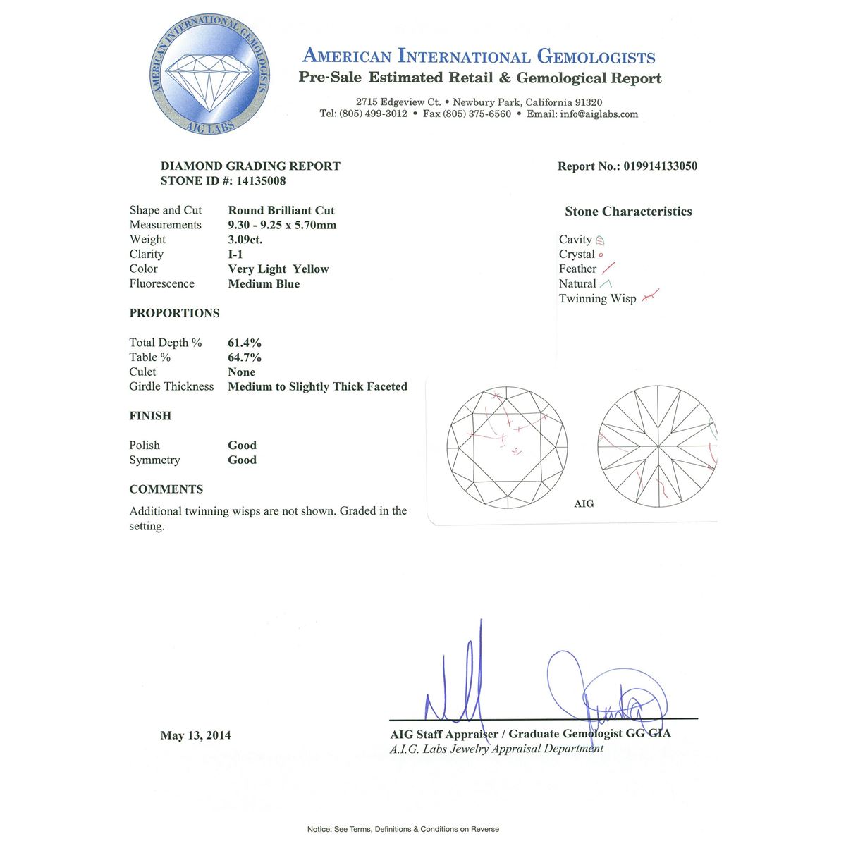 Regarding Appraised Jewelry, Watches and Loose Stones –