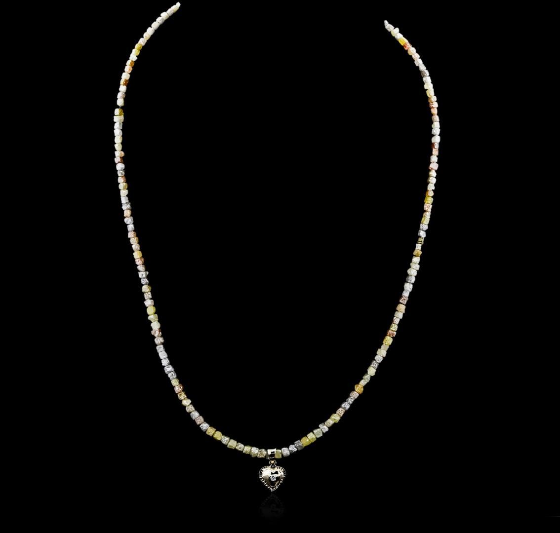 One necklace featuring: 14KT white gold weighing 8.20 grams containing rough diamonds with a total weight of 32.44cts and a heart shaped charm containing a prong set round cut diamond with a total weight of 0.04ct.