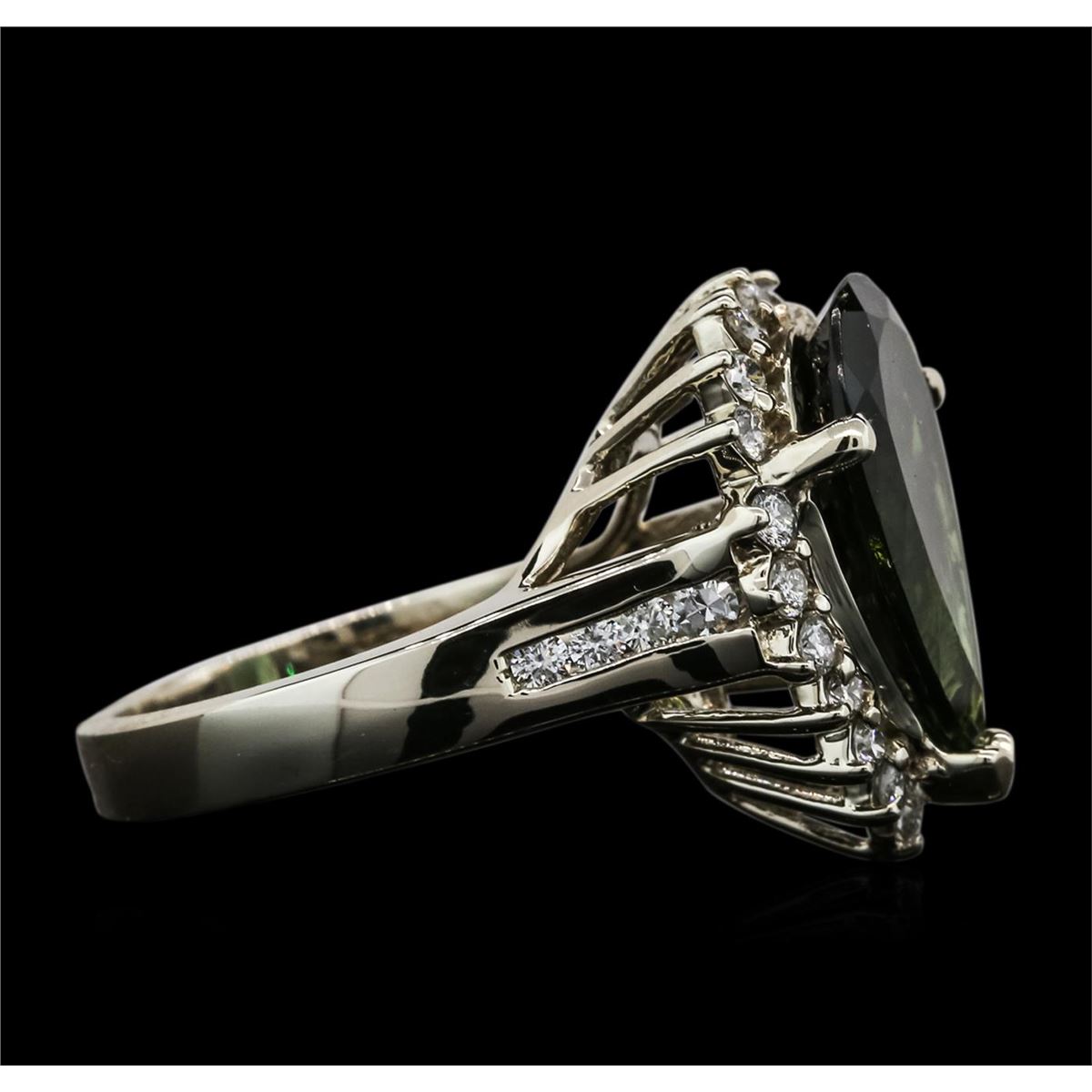 One ring featuring: 14KT white gold weighing 8.35 grams containing one green tourmaline center stone with a total weight of 4.23ct and round diamonds with a total weight of 0.60cts.