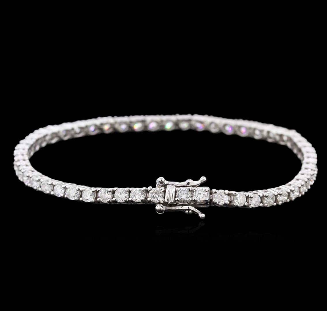 One electronically tested 14KT white gold ladies cast diamond tennis bracelet with a hidden box clasp with safety closer with a bright polish finish. Measurements: 7" in length Identified with markings of "14K". Condition is new. Containing: Fifty-One prong set round brilliant cut diamonds, measuring 2.80 - 2.80 x 1.68mm (depth est.) approximate total weight of 51 Stones = 4.49ct. Clarity: SI-2 to I-2. Color: I - J, Cut is Good. Diamonds are graded in the mounting, unless otherwise stated. Total Weight of Diamonds 4.49ct. Total Weight of Tennis Bracelet 10.00 grams. GGL Appraised at $6,250.00.