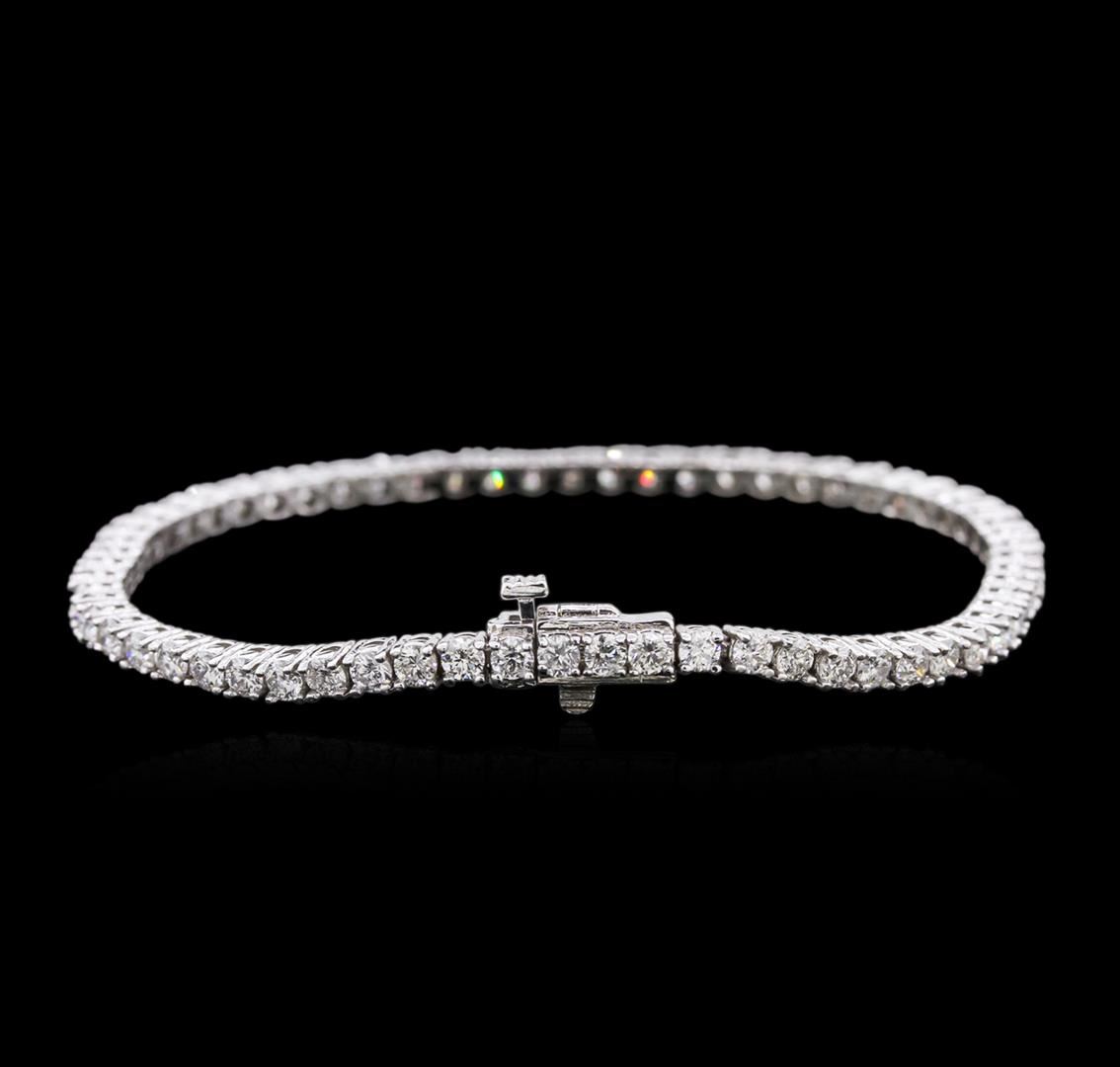 One electronically tested 14KT white gold ladies cast diamond tennis bracelet with a hidden box clasp with safety closer with a bright polish finish. Measurements: 7" in length Identified with markings of "14K". Condition is new. Containing: Sixty-Four prong set round brilliant cut diamonds, measuring 2.50 - 2.50 x 1.50mm (depth est.) approximate total weight of 64 Stones = 4.62ct. Clarity: SI-2 to I-2. Color: H - J, Cut is Good. Diamonds are graded in the mounting, unless otherwise stated. Total Weight of Diamonds 4.62ct. Total Weight of Tennis Bracelet 10.90 grams. GGL Appraised at $7,550.00.