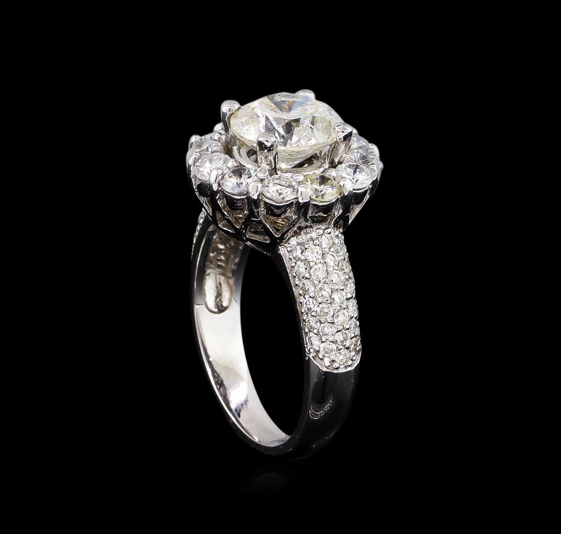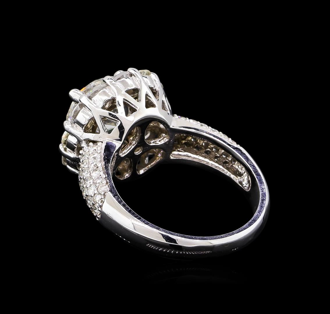 One electronically tested 14KT white gold Ladies combination cast & assembled engagement ring with a bright polish finish. Condition is new. Identified with markings of "14K". Containing: One prong set round brilliant cut diamond, measuring 8.69 - 8.67 x 5.09mm (depth est.) approximate. Total Weight of 2.64ct. Clarity: I-2. Color: G, Cut is Good. Seventy-Four prong set round brilliant cut diamonds, measuring 3.00 - 1.50 x 1.35mm (depth est.) approximate. Total Weight of 74 Stones = 1.98ct. Clarity: SI-1 to SI-3. Color: F - H, Cut is Good. EGL USA GEM ID# US 911348431D. All diamonds are graded in the mounting, unless otherwise stated. Total Weight of Diamonds 4.62ct. Total Weight of Engagement Ring 7.70 grams. GGL Appraised at $41,915.00.