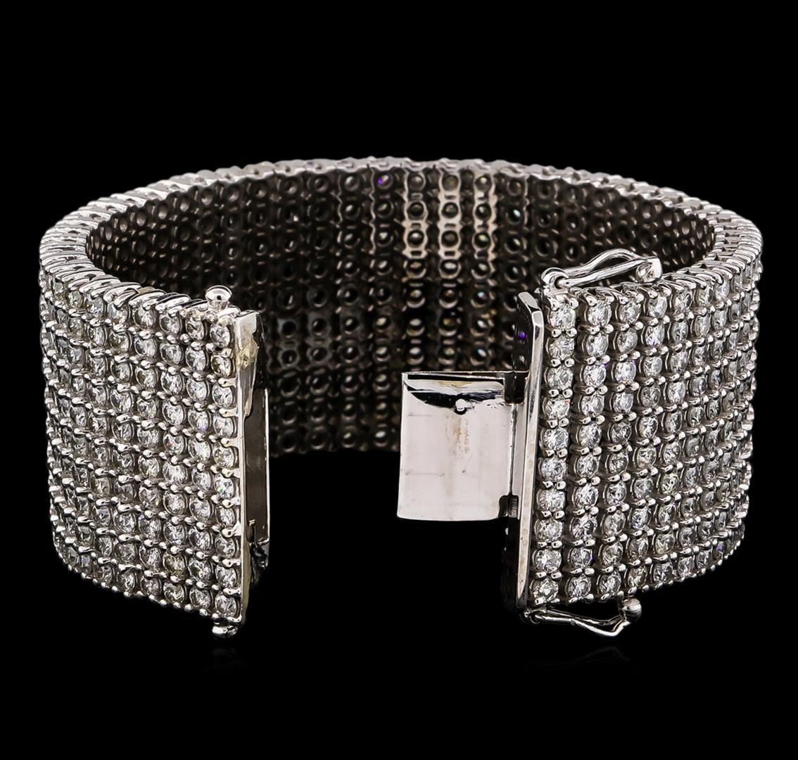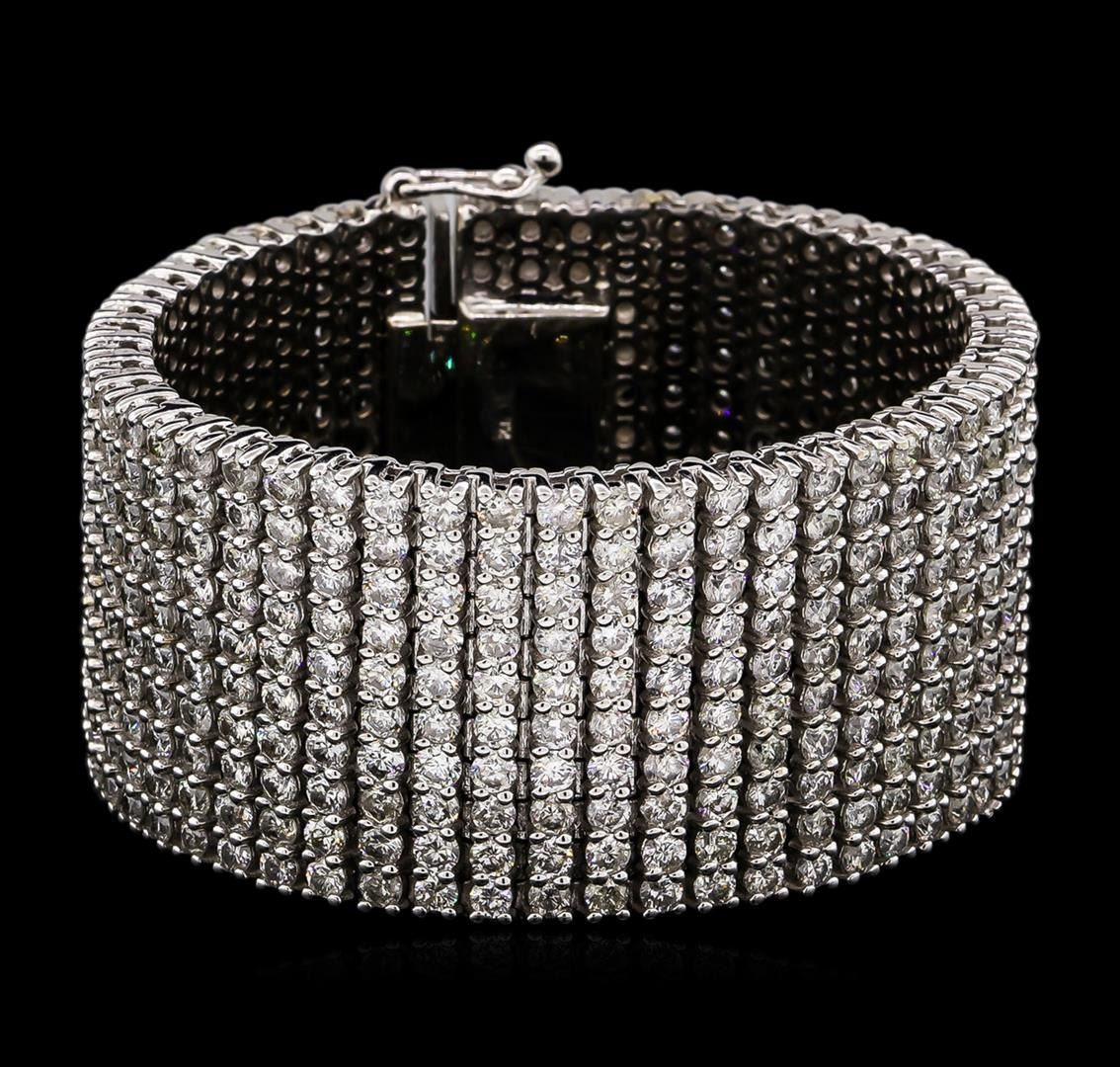 One electronically tested 14KT white gold ladies cast & assembled diamond bracelet with a bright polish finish. Condition is new, good workmanship. The bracelet features a ribbon of diamonds seven inch length and one one-quarter inch width, terminating in a concealed box clasp with twin safeties. Identified with markings of "14K". Containing: Five Hundred prong set round brilliant cut diamonds, measuring 3.00 - 2.90 x 1.77mm (depth est.) approximate. Total Weight of 500 Stones = 47.05ct. Graded in the setting. Clarity: I-1 to I-2. Color: G - J. Total Weight of Diamonds 47.05ct. Total Weight of Bracelet166.80 grams. AIG Appraised at $131,015.00.