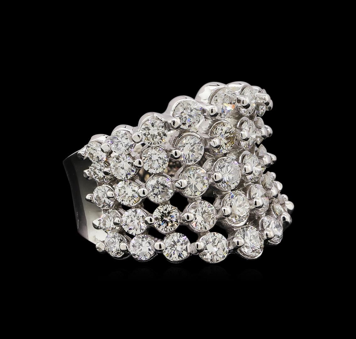 One electronically tested 14KT white gold ladies cast diamond ring with a bright polish finish. Identified with markings of "14K". Condition is new. Containing: Forty-Five prong set round brilliant cut diamonds, measuring 3.50 - 2.80 x 1.89mm (depth est.) approximate total weight of 45 Stones = 5.15ct. Clarity: SI-2 to I-1. Color: K - L. All diamonds are graded in the mounting, unless otherwise stated. Total Weight of Diamonds 5.15ct. Total Weight of Ring 11.40 grams. GGL Appraised at $10,430.00.