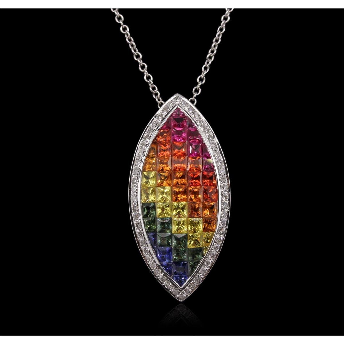 One pendant with chain featuring: 14KT white gold with a total weight of 5.90 grams, and diamonds with a total weight of 0.35ctw.