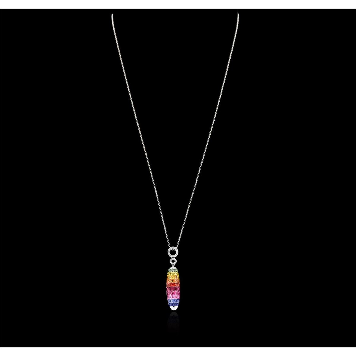 One pendant with chain featuring: 14KT white gold weighing 4.50 grams containing multicolor sapphires with a total weight of 5.58ct and diamonds with a total weight of 0.10ct.