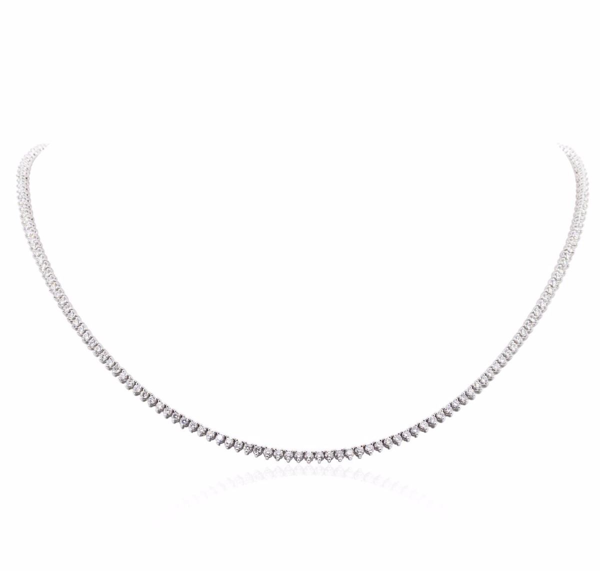 One electronically tested 14KT white gold ladies combination cast & assembled diamond necklace with a hidden box clasp with safety closer with a bright polish finish. Measurements: 20 in length. Identified with markings of 14K. Condition is new. Containing: One Hundred Ninety-Four prong set round brilliant cut diamonds, measuring 2.00 - 2.00 x 1.20mm (depth est.) approximate total weight of 194 Stones = 5.67ct. Clarity: SI-2 to I-1. Color: H - I, Cut is Good. All diamonds are graded in the mounting, unless otherwise stated. Total Weight of Diamonds 5.67ct. Total Weight of Necklace 24.90 grams. GGL Appraised at $16,070.00.