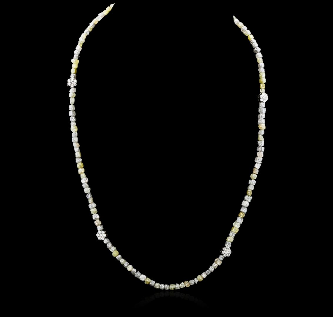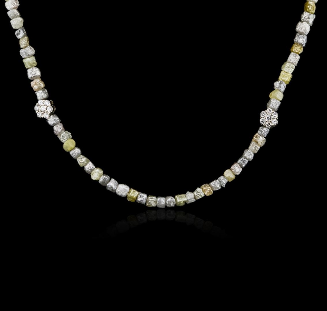 One necklace featuring: 14KT white gold weighing 12.60 grams containing rough diamonds with a total weight of 51.57cts and prong set round cut diamond clusters with a total weight of 0.64cts.