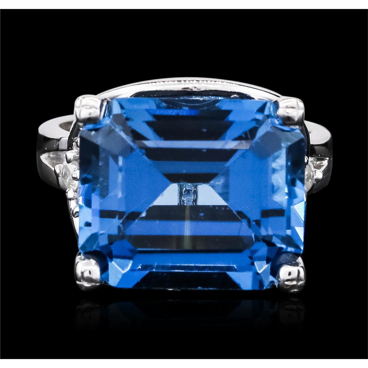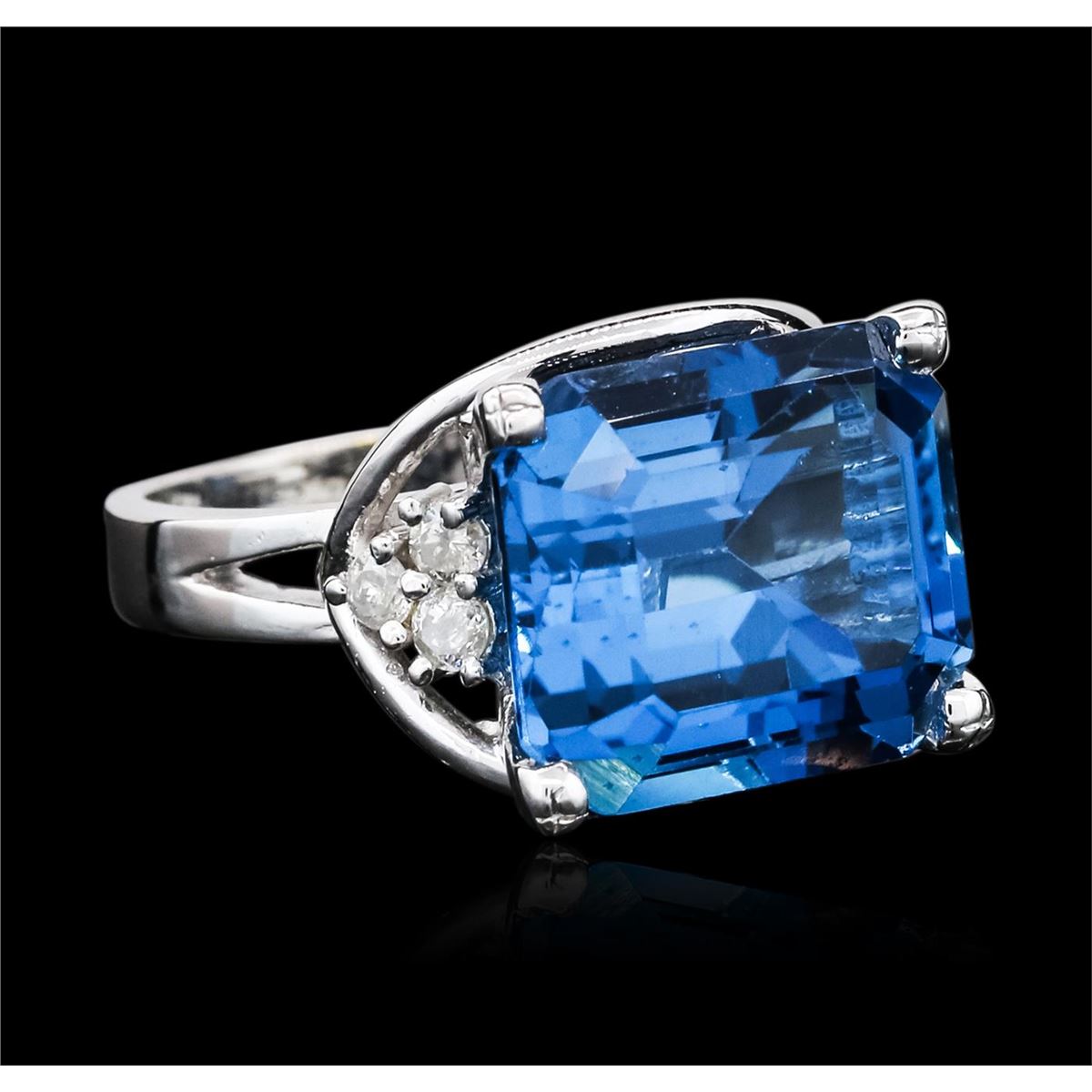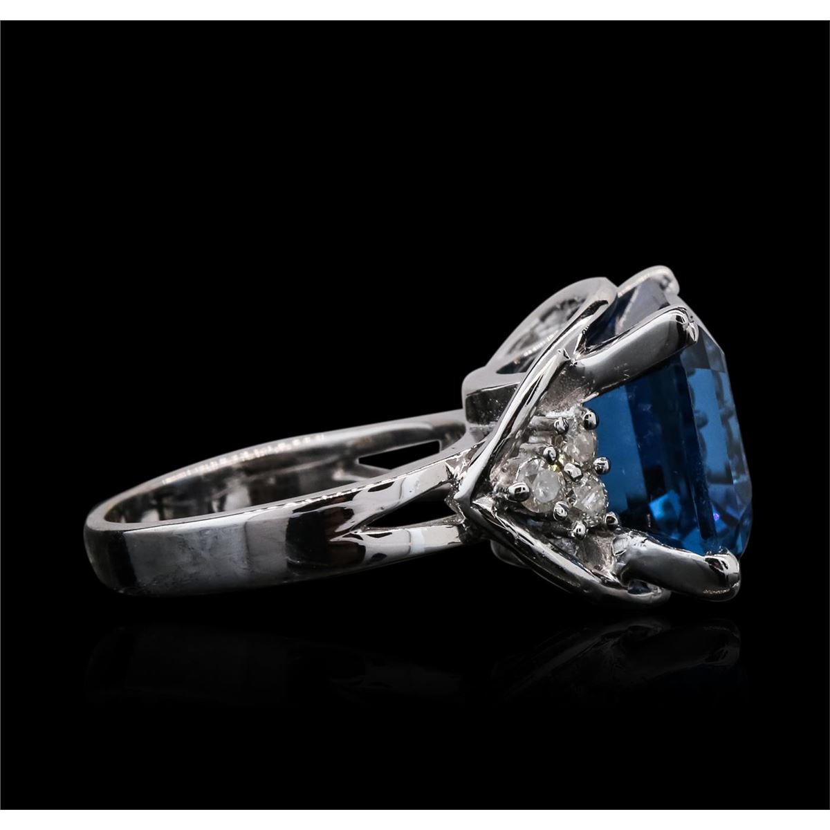 One ring featuring: 14KT white gold weighing 8.00 grams containing one blue topaz center stone with a total weight of 6.00ct and round cut diamonds with a total weight of 0.18cts.