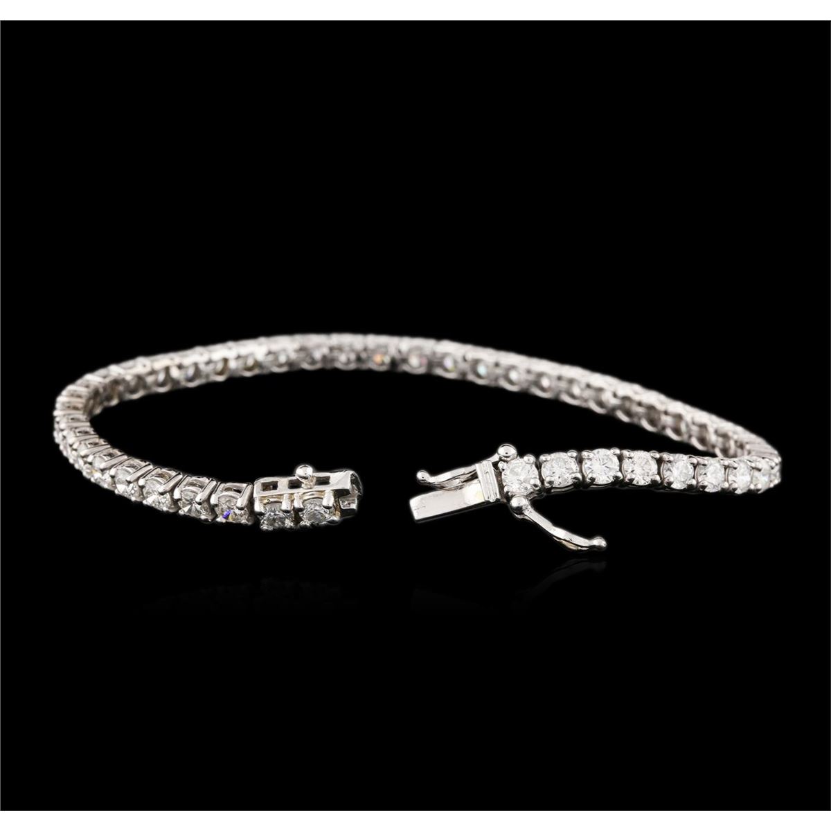 One electronically tested 14KT white gold ladies cast diamond tennis bracelet with a hidden box clasp with a bright and brushed finish. Measurements: 7." in length. Identified with markings of "14K". Condition is new. Containing: Forty-Six prong set round brilliant cut diamonds, measuring 3.30 - 3.30 x 1.98mm (depth est.) approximate total weight of 46 Stones = 6.05ct. Clarity: I-1 to I-2. Color: I - K. All diamonds are graded in the mounting, unless otherwise stated. Total Weight of Diamonds 6.05ct. Total Weight of Tennis Bracelet 10.80 grams. GGL Appraised at $11,325.00.