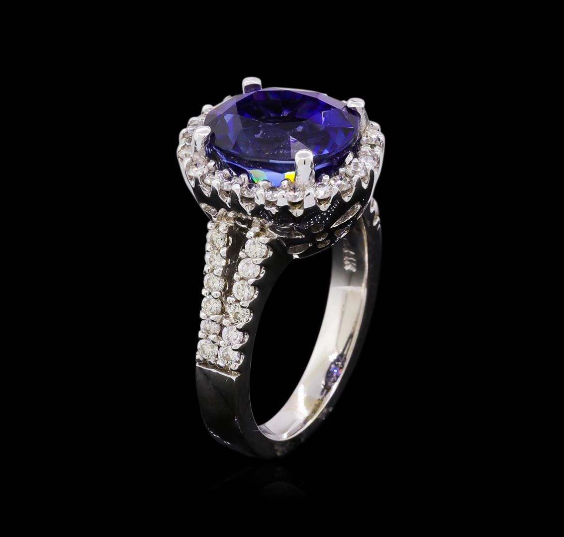 One electronically tested 14KT white gold Ladies combination cast & assembled fancy ring with a bright polish finish. Identified with markings of "14K". Condition is excellent. Containing: One prong set oval modified brilliant cut natural blue sapphire, measuring 11.10 x 9.10 x 6.50mm, approximate weight of 6.64ct., clarity is eye clean, type II, cut is very good. Colored gemstones are presumed to have been subjected to commonly used and possible undetectable color/clarity enhancement processes. Forty-Eight prong set round brilliant cut diamonds, measuring 1.60 x 0.96mm (depth est.) approximate total weight of 48 Stones = 0.78ct. Clarity of SI-1 to SI-2, Color of J - K, Cut is Good. Total Weight of Colored Stones 6.64ct. Total Weight of Diamonds 0.78ct. Total Weight of Ring 8.90gm. GGL Appraised at $17,645.00.