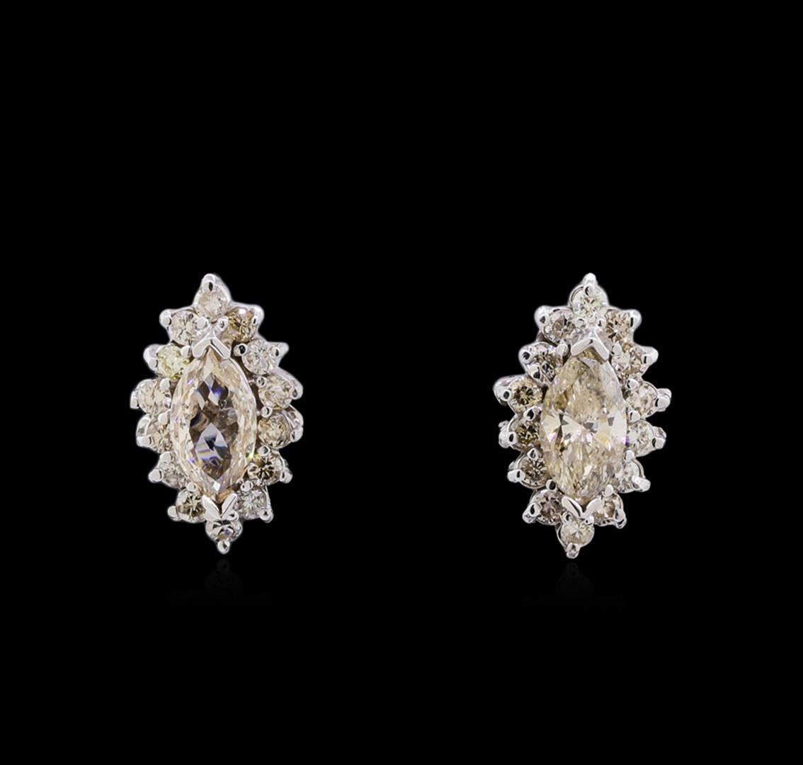 New Condition! One suite electronically tested 14KT white gold Ladies combination cast & assembled fashion ring and earrings with screw backs with a bright polish finish. Identified with markings of "14K". Condition is excellent. Containing: Eighty-Five prong set round brilliant cut diamonds, measuring 1.50 - 1.50 x 0.90mm (depth est.) approximate total weight of 85 Stones = 1.04ct. Clarity of SI-1 to I-1, Color of J - N. Nine prong set marquise shaped cut diamonds, measuring 8.57 x 4.52 x 2.89mm (depth est.) approximate total weight of 9 Stones = 5.78ct. Clarity of I-1 to I-1, Color of N - P. Total Weight of Diamonds 6.82 ct. Total Weight of Ring 13.50 gm. GGL Appraised at $33,125.00.