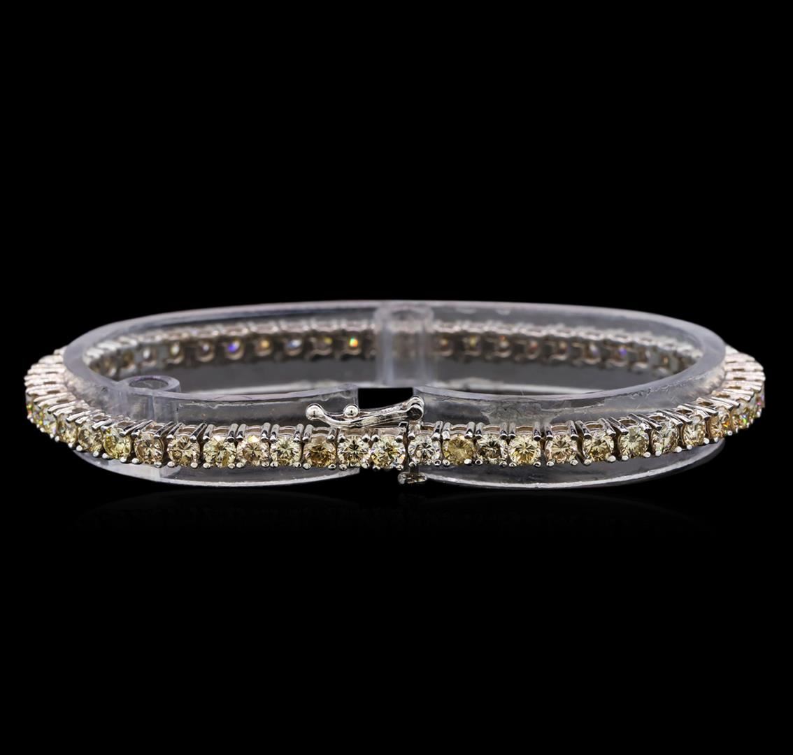 One electronically tested 14KT white gold ladies cast diamond tennis bracelet with a hidden box clasp with safety closer with a bright polish finish. Measurements: 7 inches length Identified with markings of "14K". Condition is very good. Containing: Fifty-Seven prong set round brilliant cut diamonds, measuring 3.20 - 3.20 x 1.92mm (depth est.) approximate total weight of 57 Stones = 6.83ct. Clarity: SI-2 to I-1. Color: J - L. All diamonds are graded in the mounting, unless otherwise stated. Total Weight of Diamonds 6.83ct. Total Weight of Tennis Bracelet 16.10 grams. GGL Appraised at $8,740.00.