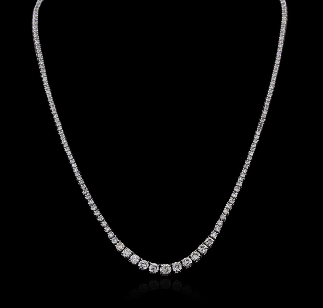 One electronically tested 14KT white gold ladies cast diamond necklace with a hidden box clasp with safety closer with a bright polish finish. Measurements: 17.25" in length Identified with markings of "14K". Condition is new. Containing: Twelve prong set round brilliant cut diamonds, measuring 4.50 - 3.50 x 2.40mm (depth est.) approximate total weight of 12 Stones = 2.81ct. Clarity: VS-2 to SI-2. Color: J, Cut is Good. One Hundred Sixty-Seven prong set round brilliant cut diamonds, measuring 1.90 - 1.90 x 1.14mm (depth est.) approximate total weight of 167 Stones = 4.19ct. Clarity: SI-2 to I-2. Color: H - I, Cut is Good. Diamonds are graded in the mounting, unless otherwise stated. Total Weight of Diamonds 7.00ct. Total Weight of Necklace 25.20 grams. GGL Appraised at $16,560.00.