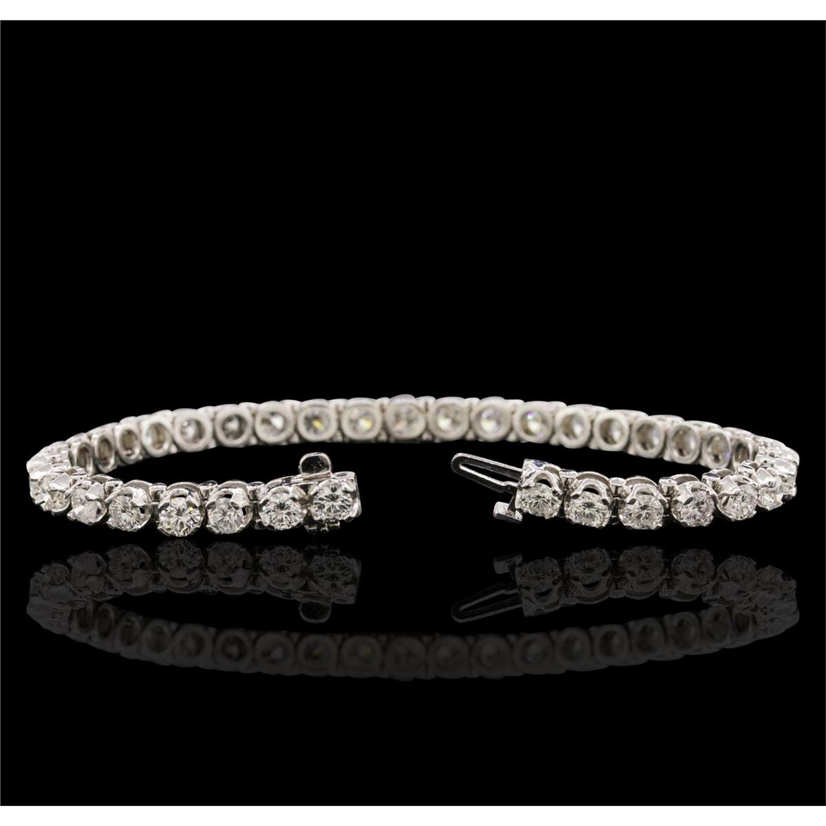 One electronically tested 14KT white gold ladies combination cast & assembled tennis bracelet with a hidden box clasp with a bright polish finish. Condition is new. Measurements: 6.85" in length. Identified with markings of "14K". Containing: Thirty-Six prong set round brilliant cut diamonds, measuring 3.80 - 3.80 x 2.28mm (depth est.) approximate total weight of 36 Stones = 7.23ct. Clarity: SI-1 to I-1. Color: I - J, Cut is Good. All diamonds are graded in the mounting, unless otherwise stated. Total Weight of Diamonds 7.23ct. Total Weight of Bracelet 15.10 grams. GGL Appraised at $29,205.00.