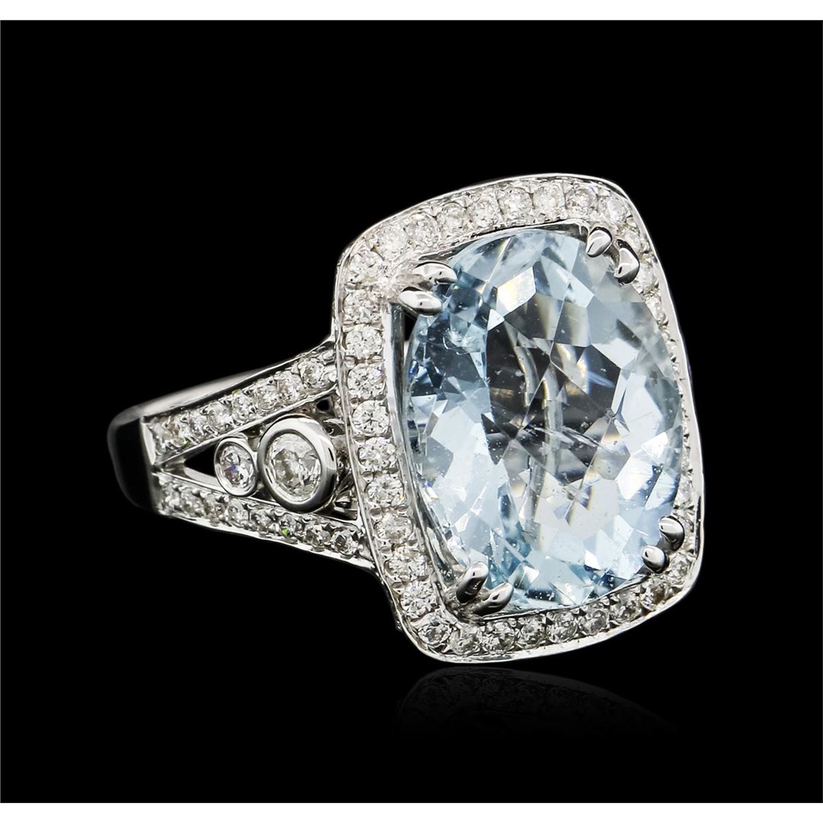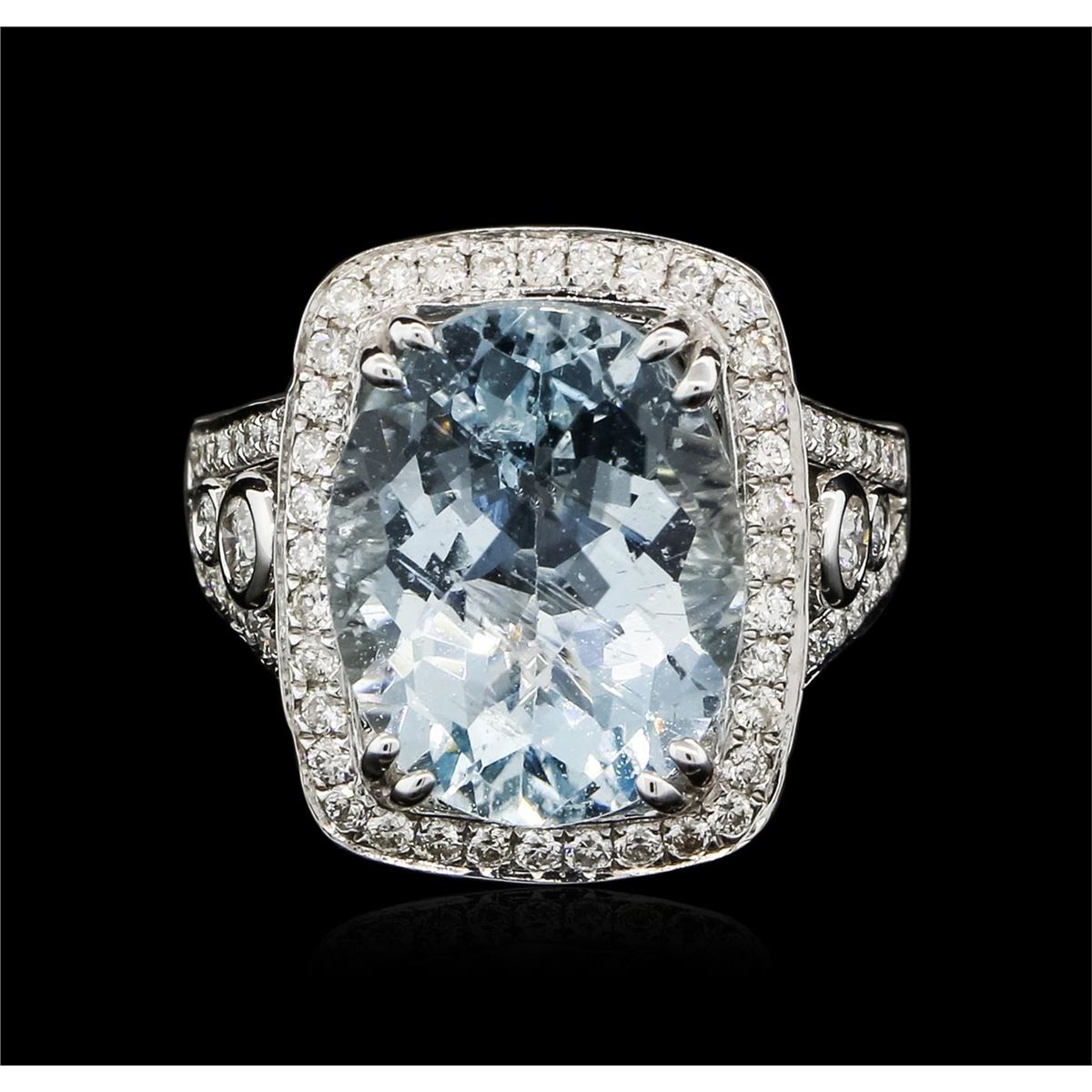 One ring featuring: 14KT white gold weighing 6.20 grams containing one aquamarine center stone with a total weight of 7.27ct and 212 round diamonds with a total weight of 1.45ct.