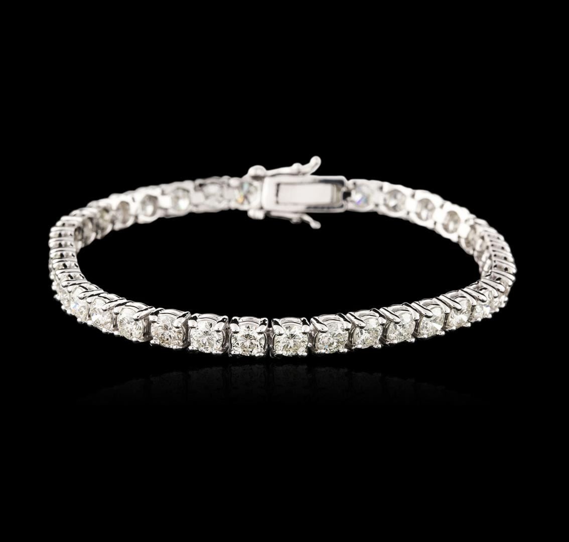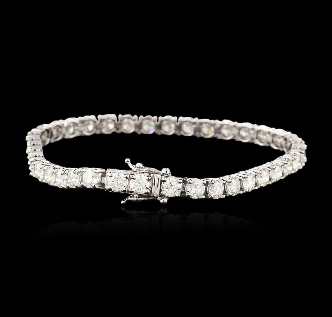 One electronically tested 14KT white gold ladies cast & assembled diamond tennis bracelet with a bright polish finish. Seven and one-quarter inch length bracelet composed of a flexible ribbon of diamonds, terminating in a concealed clasp with twin safeties. Identified with markings of "14K". Condition is new, good workmanship. Tennis bracelets & necklaces got their unusual name from an incident involving the U.S. professional tennis player Chris Evert during a tennis match in the 1980's. Evert had been wearing an expensive diamond bracelet, an inline string of individually-set diamonds. Previously these bracelets were known as eternity bracelets. When the clasp snapped during play, she asked the officials to stop the tennis match until the bracelet could be found. Since that day, bracelets and necklaces featuring an inline string of diamonds have been called tennis bracelets and tennis necklaces. Containing: Thirty-Eight prong set round brilliant cut diamonds, measuring 3.80 - 3.75 x 2.30mm (depth est.) approximate total weight of 38 Stones = 7.60ct. Graded in the setting. Clarity: SI-1 to I-1. Color: H - J. Total Weight of Diamonds 7.60ct. Total Weight of Tennis Bracelet 13.83 grams. AIG Appraised at $26,845.00.