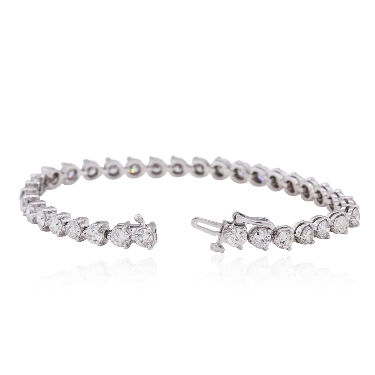 One electronically tested 14KT white gold ladies combination cast & assembled tennis bracelet with a hidden box clasp with safety closer with a bright polish finish. Measurements: 7 in length. Identified with markings of 14K. Condition is new. Containing: Thirty-Five prong set round brilliant cut diamonds, measuring 3.90 - 3.90 x 2.34mm (depth est.) approximate total weight of 35 Stones = 7.60ct. Clarity: SI-1 to I-1. Color: H - J, Cut is Good. All diamonds are graded in the mounting, unless otherwise stated. Total Weight of Diamonds 7.60ct. Total Weight of Bracelet 13.70 grams. GGL Appraised at $24,275.00.