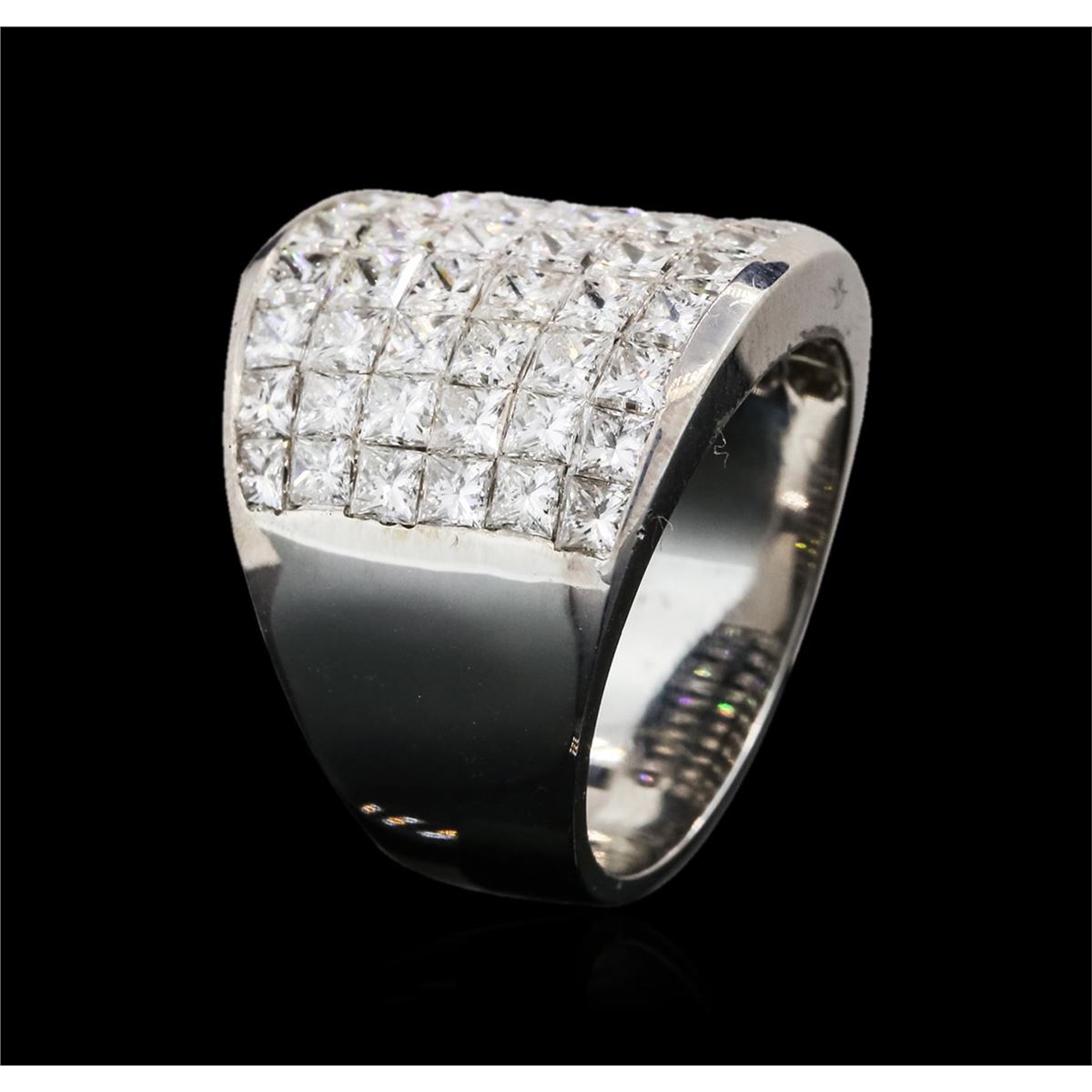 One electronically tested 14KT white gold ladies combination cast & assembled diamond ring with a bright polish finish. Identified with markings of "14K". Condition is new. Containing: Sixty invisible set princess cut diamonds, measuring 2.80 x 2.80 x 2.10mm (depth est.) approximate total weight of 60 Stones = 8.10ct. Clarity: SI-1. Color: J - K, Cut is Good. All diamonds are graded in the mounting, unless otherwise stated. Total Weight of Diamonds 8.10ct. Total Weight of Ring 15.00 grams. GGL Appraised at $14,020.00.