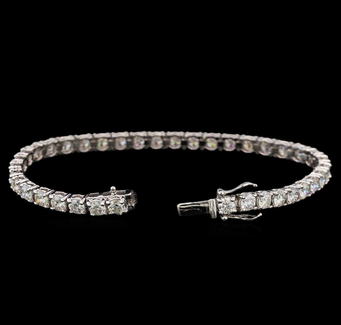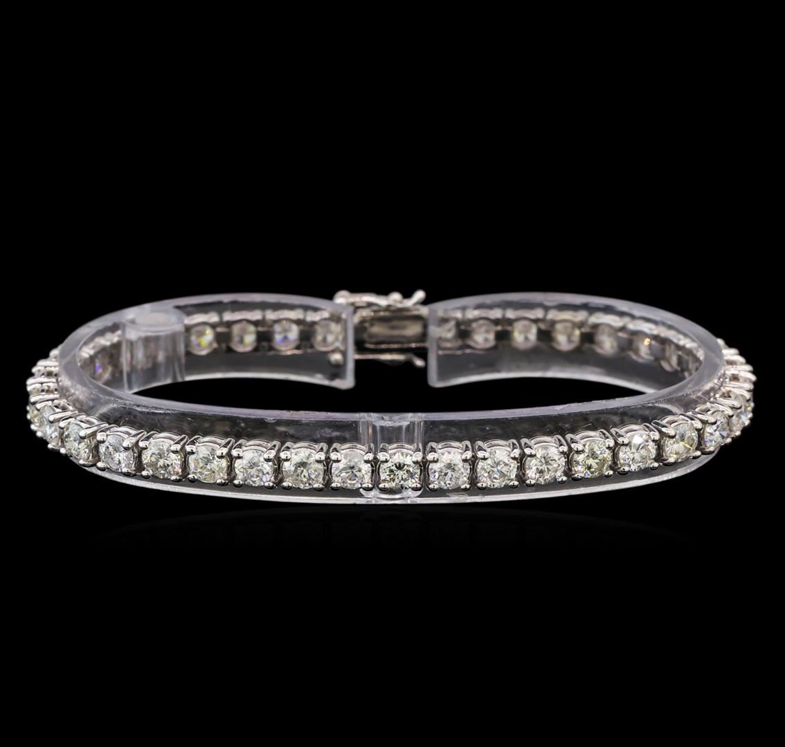 One electronically tested 14KT white gold ladies cast & assembled diamond tennis bracelet with a bright polish finish. Seven and one-quarter inch length bracelet composed of a flexible ribbon of diamonds, terminating in a concealed clasp with twin safeties. Identified with markings of "14K". Condition is new, good workmanship. Tennis bracelets & necklaces got their unusual name from an incident involving the U.S. professional tennis player Chris Evert during a tennis match in the 1980's. Evert had been wearing an expensive diamond bracelet, an inline string of individually-set diamonds. Previously these bracelets were known as eternity bracelets. When the clasp snapped during play, she asked the officials to stop the tennis match until the bracelet could be found. Since that day, bracelets and necklaces featuring an inline string of diamonds have been called tennis bracelets and tennis necklaces. Containing: Thirty-Eight prong set round brilliant cut diamonds, measuring 3.85 - 3.75 x 2.45mm (depth est.) approximate total weight of 38 Stones = 8.20ct. Graded in the setting. Clarity: SI-1 to I-1. Color: H - J. Total Weight of Diamonds 8.20ct. Total Weight of Tennis Bracelet 14.33 grams. AIG Appraised at $28,845.00.