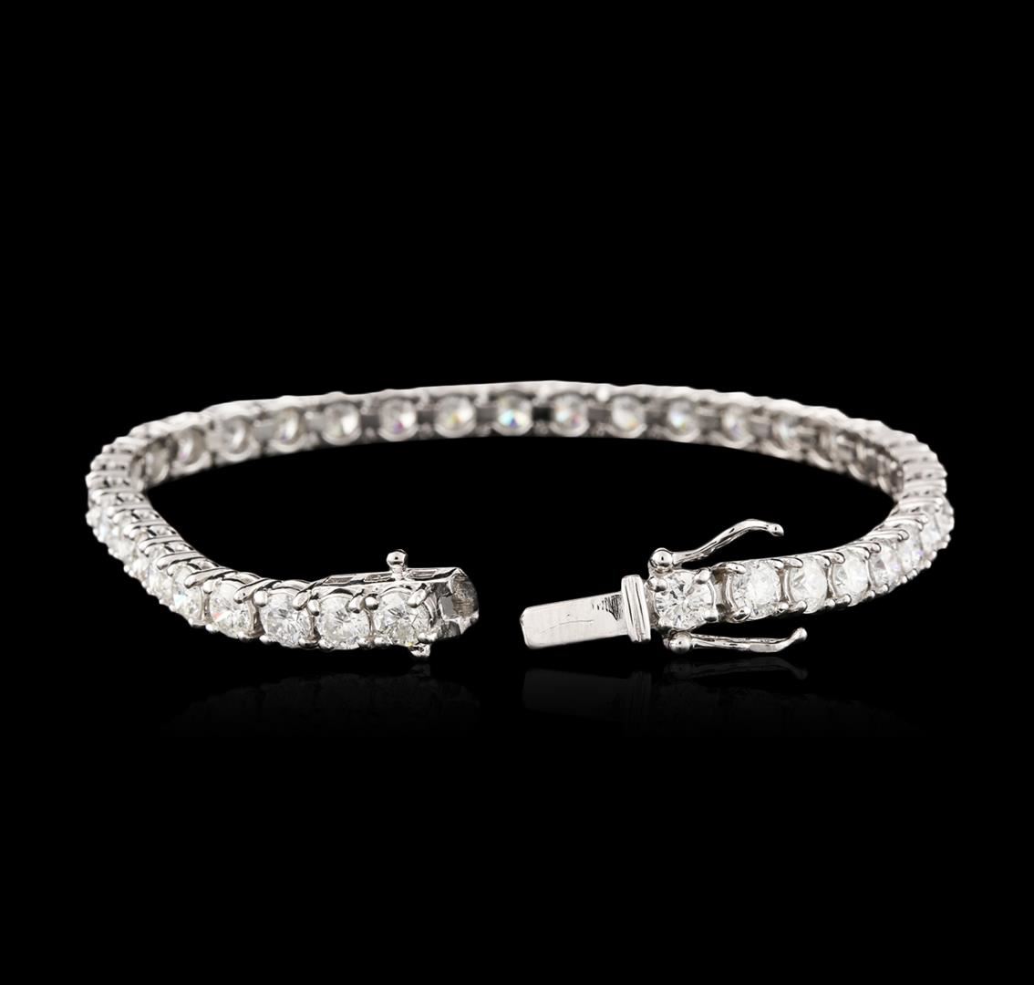 One electronically tested 14KT white gold ladies cast & assembled diamond tennis bracelet with a bright polish finish. Seven and one-quarter inch length bracelet composed of a flexible ribbon of diamonds, terminating in a concealed clasp with twin safeties. Identified with markings of "14K". Condition is new, good workmanship. Tennis bracelets & necklaces got their unusual name from an incident involving the U.S. professional tennis player Chris Evert during a tennis match in the 1980's. Evert had been wearing an expensive diamond bracelet, an inline string of individually-set diamonds. Previously these bracelets were known as eternity bracelets. When the clasp snapped during play, she asked the officials to stop the tennis match until the bracelet could be found. Since that day, bracelets and necklaces featuring an inline string of diamonds have been called tennis bracelets and tennis necklaces. Containing: Thirty-Eight prong set round brilliant cut diamonds, measuring 3.85 - 3.75 x 2.45mm (depth est.) approximate total weight of 38 Stones = 8.20ct. Graded in the setting. Clarity: SI-1 to I-1. Color: H - J. Total Weight of Diamonds 8.20ct. Total Weight of Tennis Bracelet 14.33 grams. AIG Appraised at $28,845.00.