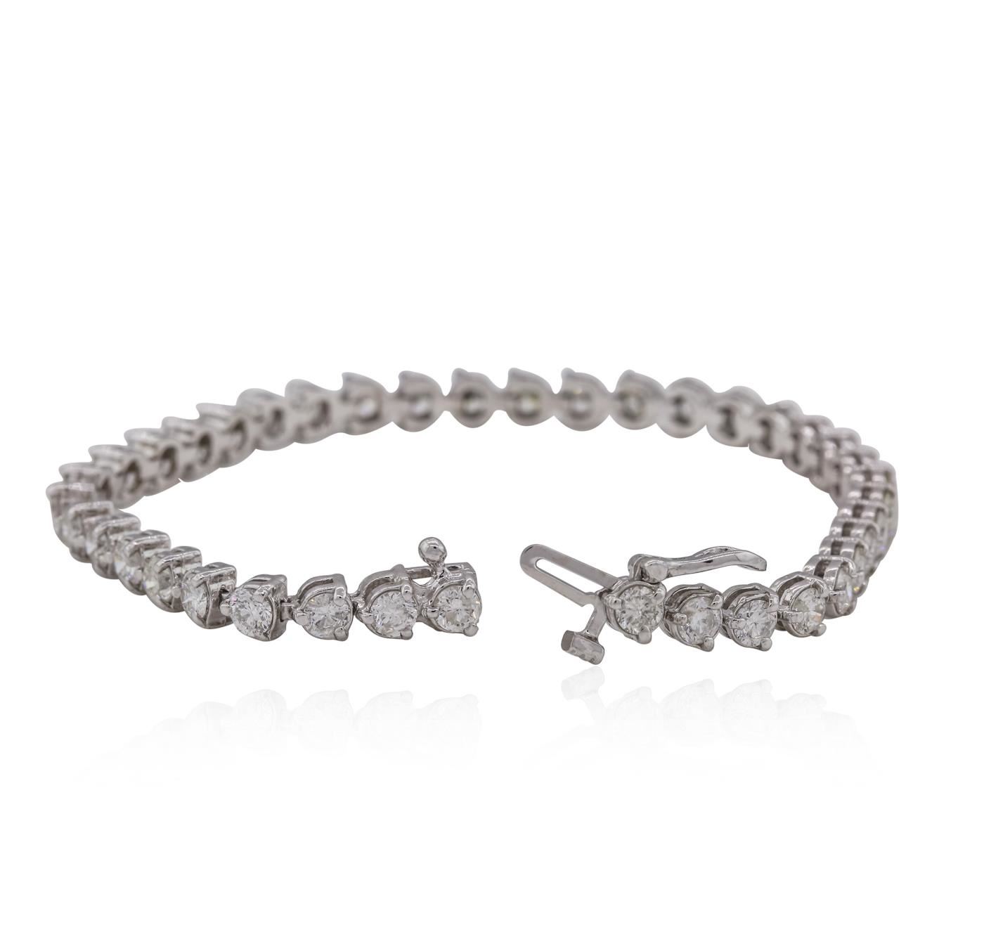One electronically tested 14KT white gold ladies combination cast & assembled tennis bracelet with a hidden box clasp with safety closer with a bright polish finish. Measurements: 7 in length. Identified with markings of 14K. Condition is new. Containing: Thirty-Nine prong set round brilliant cut diamonds, measuring 3.90 - 3.90 x 2.34mm (depth est.) approximate total weight of 39 Stones = 8.47ct. Clarity: I-1 to I-2. Color: I - J, Cut is Good. All diamonds are graded in the mounting, unless otherwise stated. Total Weight of Diamonds 8.47ct. Total Weight of Bracelet 12.36 grams. GGL Appraised at $16,110.00.