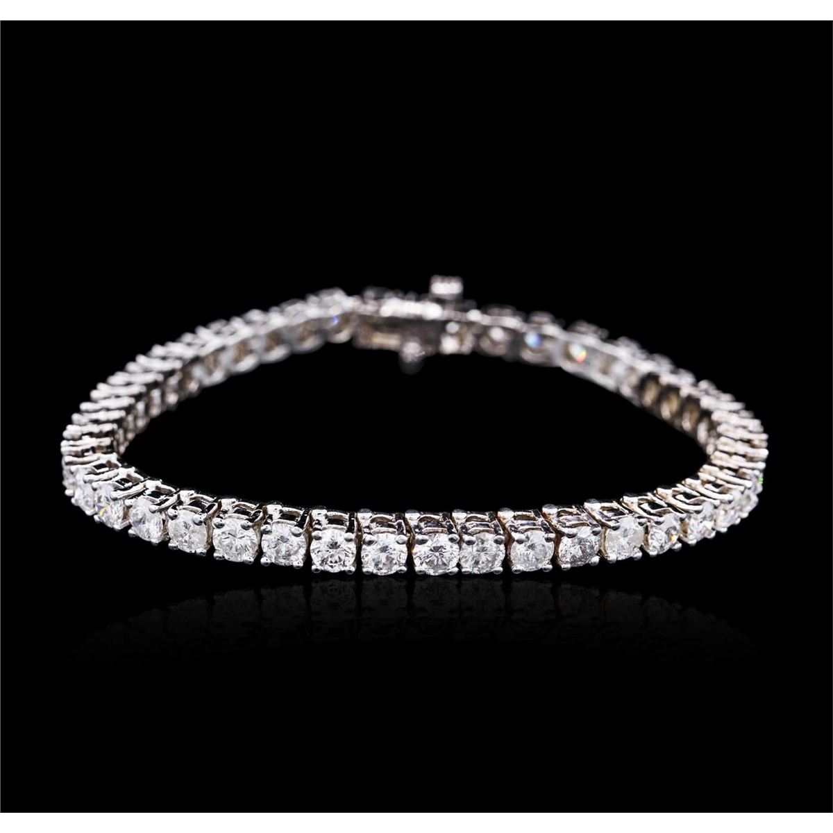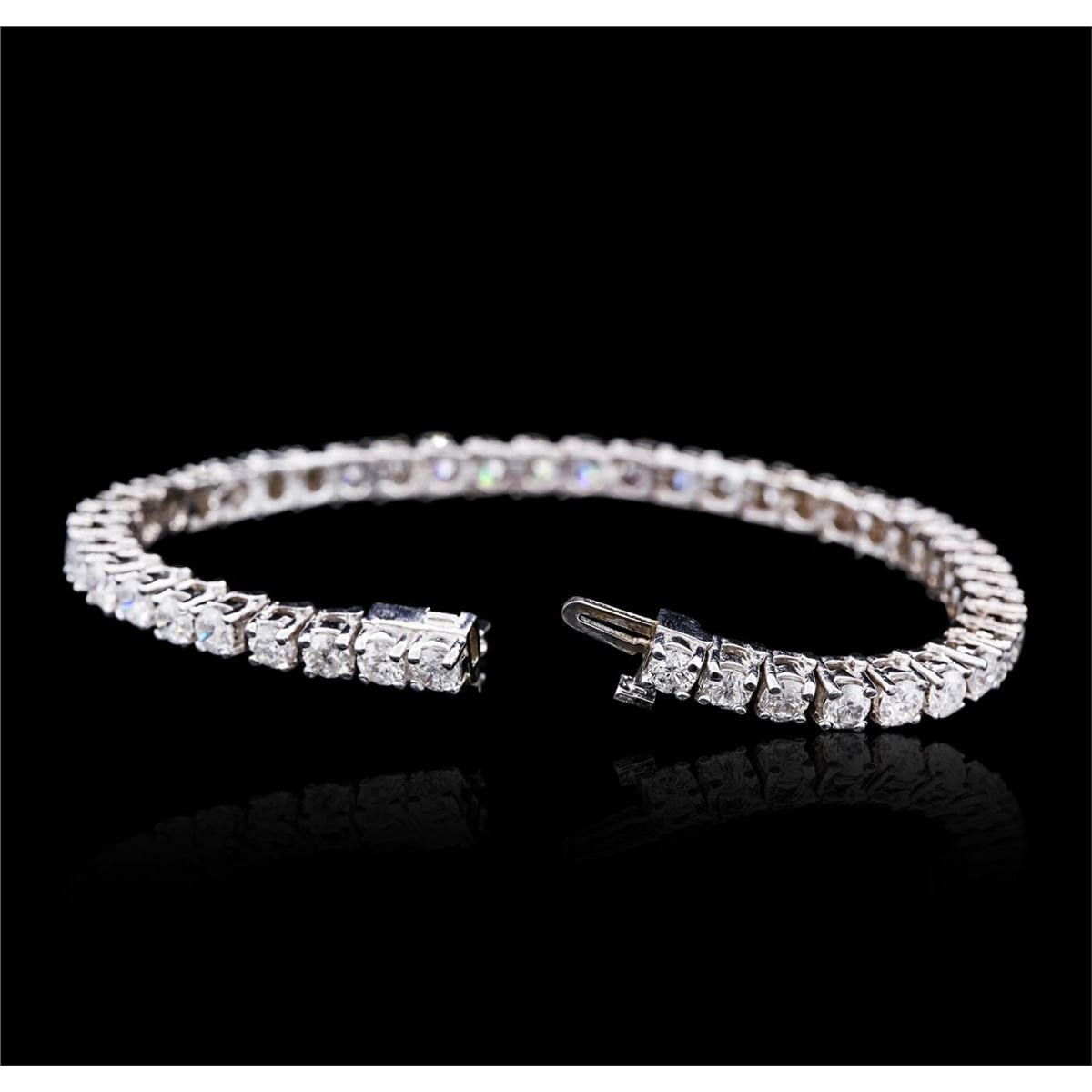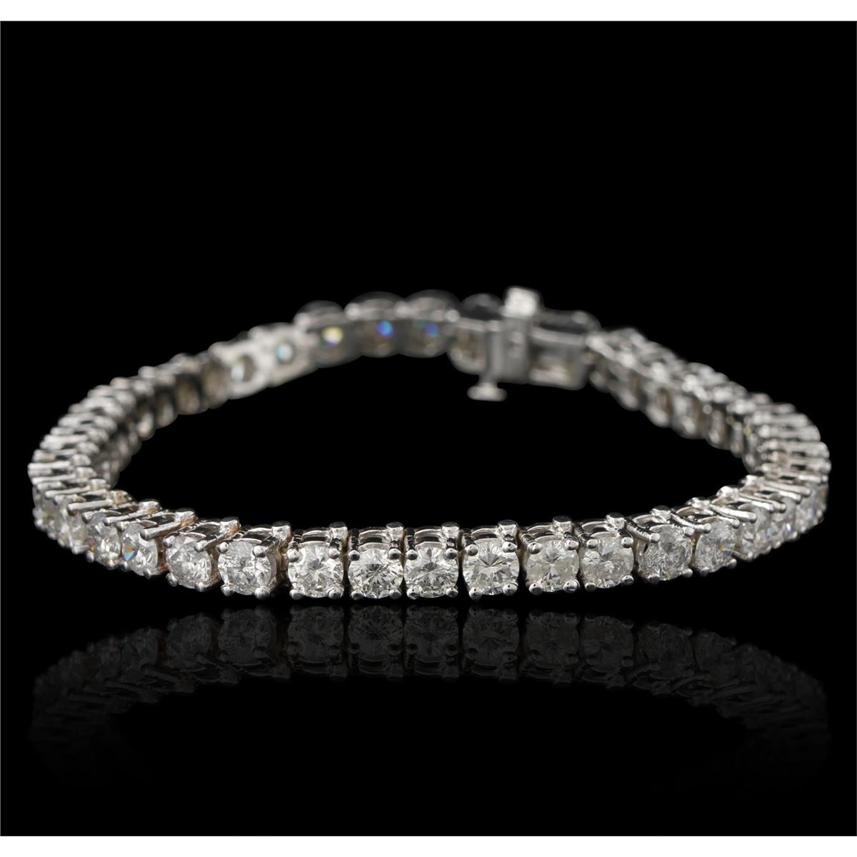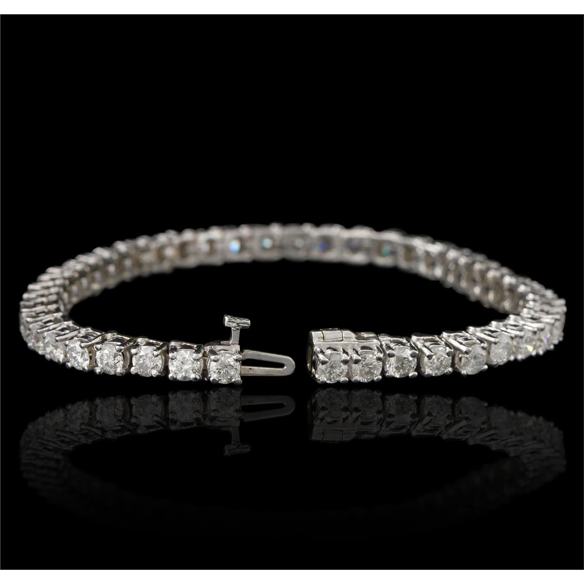 One polished, stamped, and electronically tested solid 14KT White Gold bracelet mounted with 45 genuine round diamonds weighing 9.25 carats. The bracelet is finished with a tension lock clasp and lever lock safety clasp. The bracelet measures 7 inches in length and weighs 18.4 grams, condition is new, excellent workmanship. AIGL Appraised at $24,340.00.