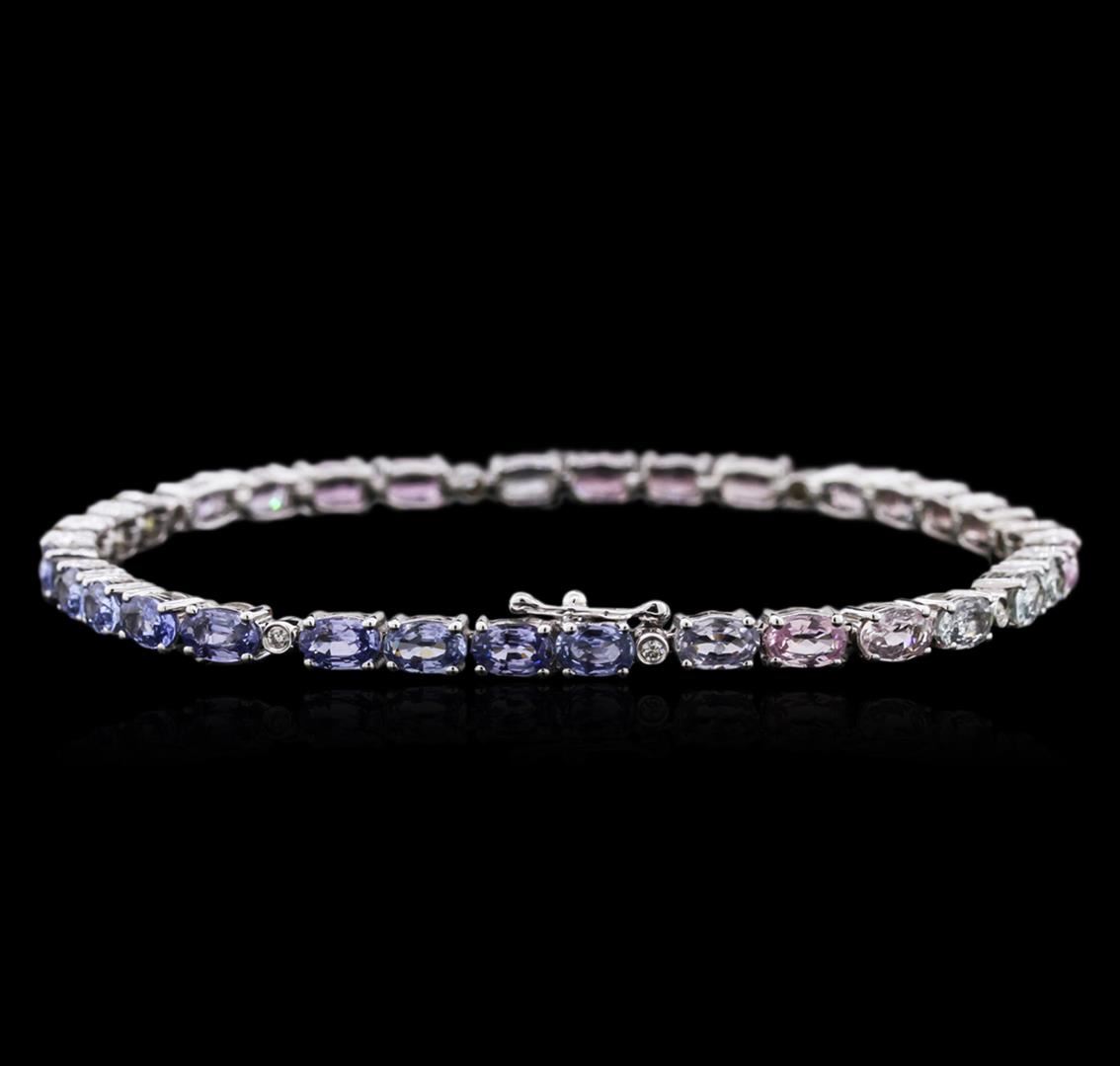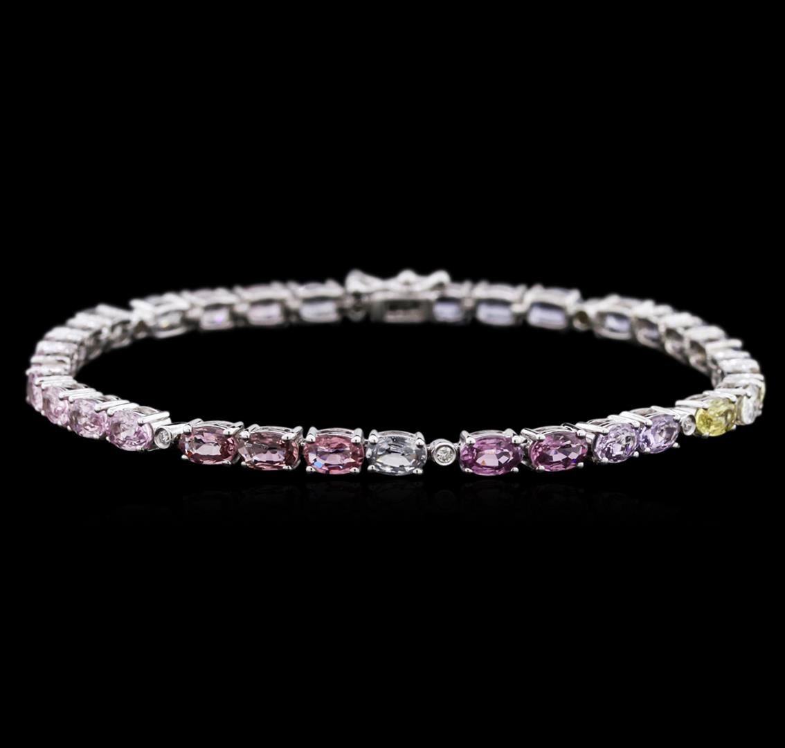One bracelet featuring: 14KT white gold weighing 7.60 grams containing 32 natural fancy multicolored sapphires with a total weight of 9.60ct and eight round diamonds with a total weight of 0.07ct.