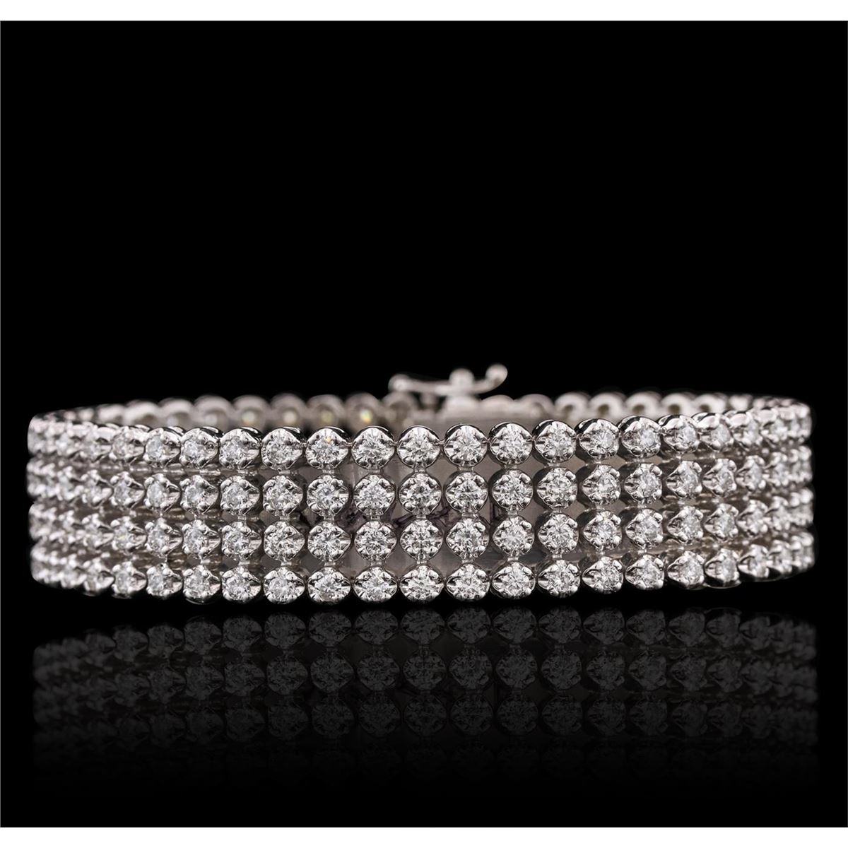 One electronically tested 14KT white gold ladies combination cast & assembled bracelet with a hidden box clasp with a bright polish finish. Measurements: 7" in length Identified with markings of "14K". Condition is new. Containing: One Hundred Ninety-Two prong set round brilliant cut diamonds, measuring 2.40 - 2.40 x 1.44mm (depth est.) approximate total weight of 192 Stones = 9.72ct. Clarity: SI-1 to SI-2. Color: H - I, Cut is Good. All diamonds are graded in the mounting, unless otherwise stated. Total Weight of Diamonds 9.72ct. Total Weight of Bracelet 46.80 grams. GGL Appraised at $34,105.00.
