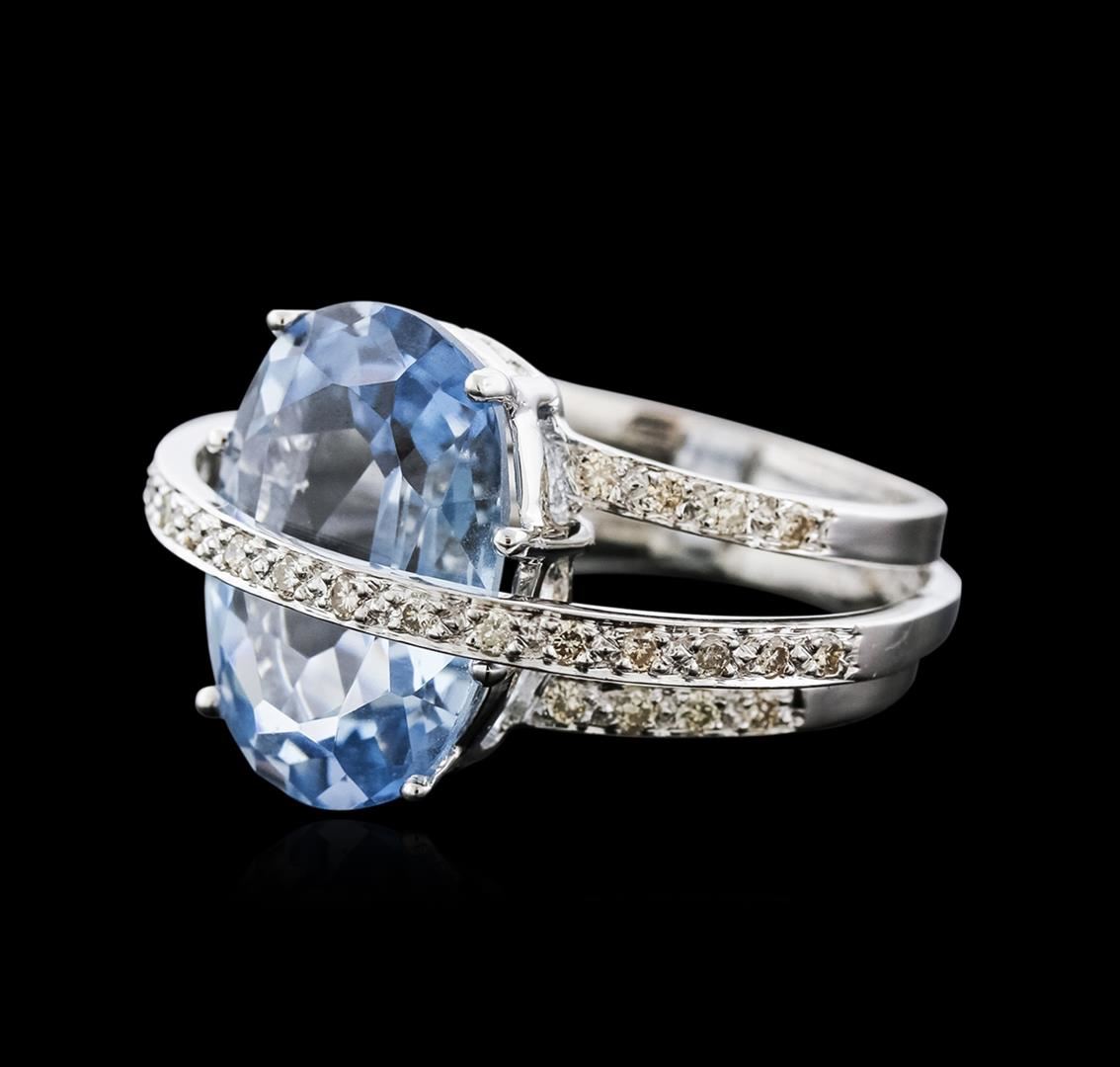 One ring featuring: 14KT white gold weighing 8.90 grams containing one oval cut blue topaz weighing 9.75ct and round diamonds weighing 1.00ct.