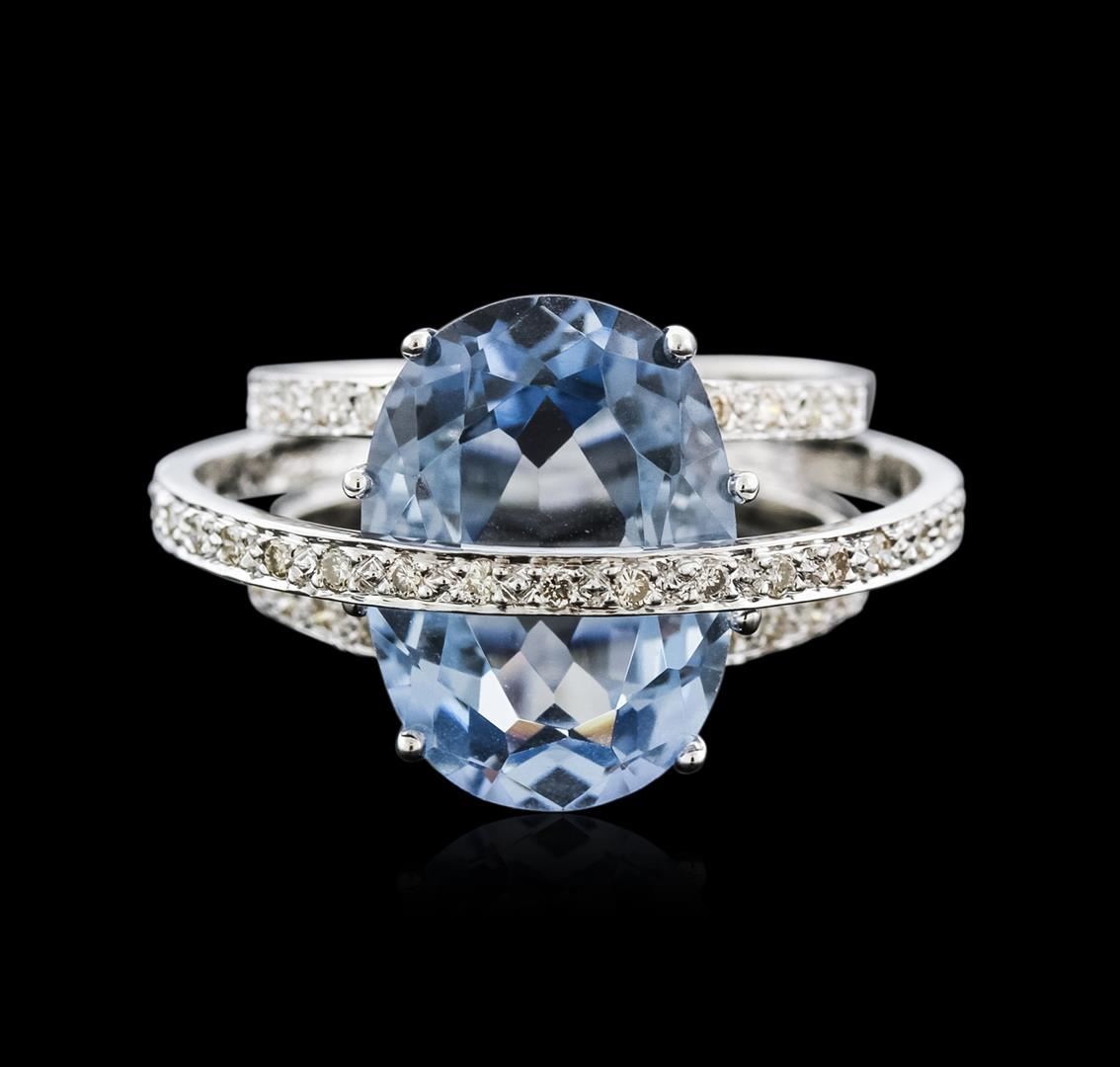 One ring featuring: 14KT white gold weighing 8.90 grams containing one oval cut blue topaz weighing 9.75ct and round diamonds weighing 1.00ct.