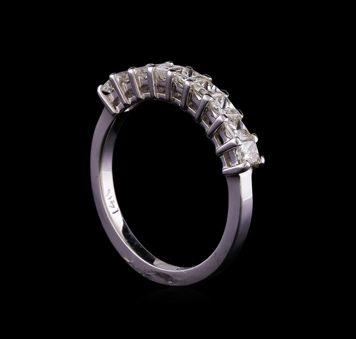 One ladies anniversary ring featuring: 14KT white gold weighing 2.60 grams containing nine diamonds.